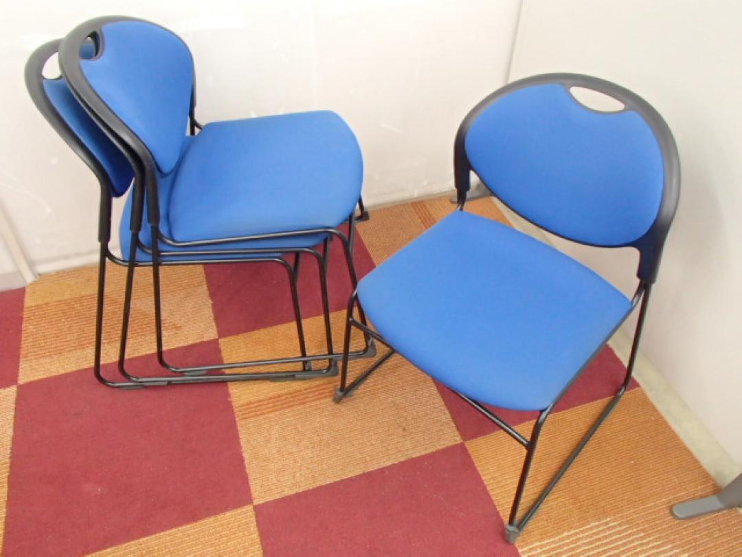 スタッキングチェア |4脚セット |イトーキ製 |重ねて収納 |ブルー|【セット商品】 【大阪】- 大阪・堺店