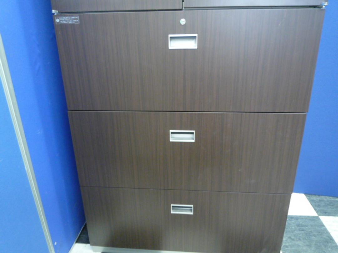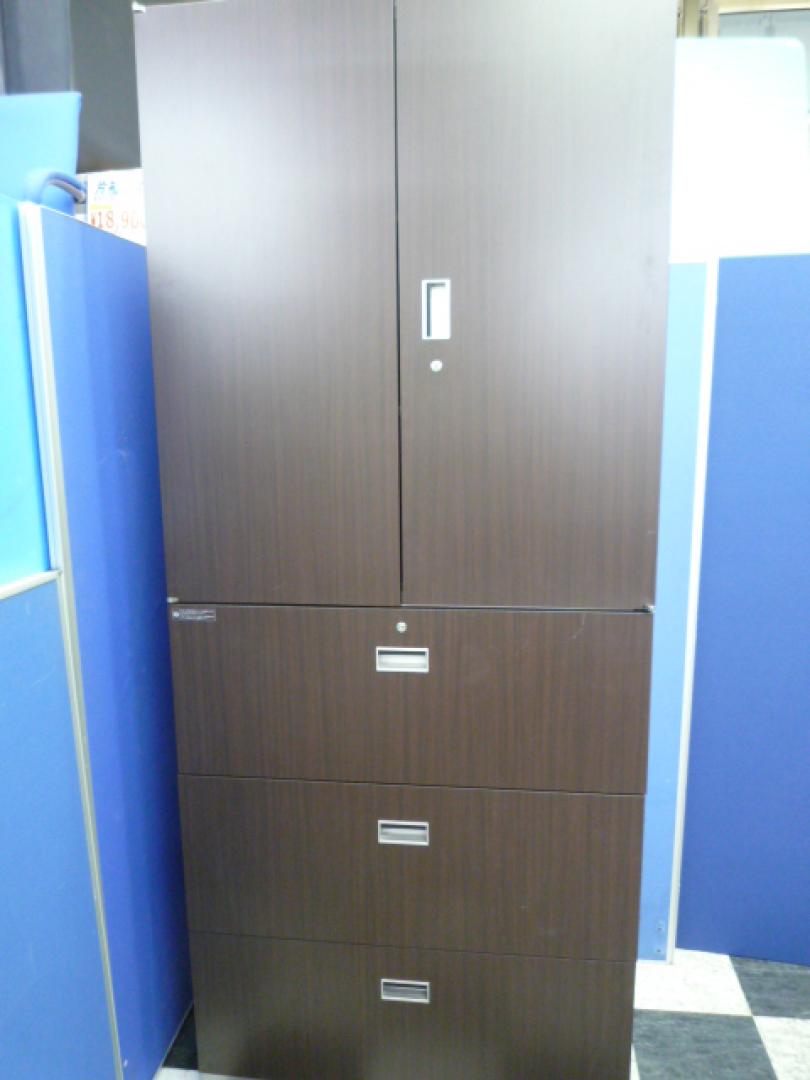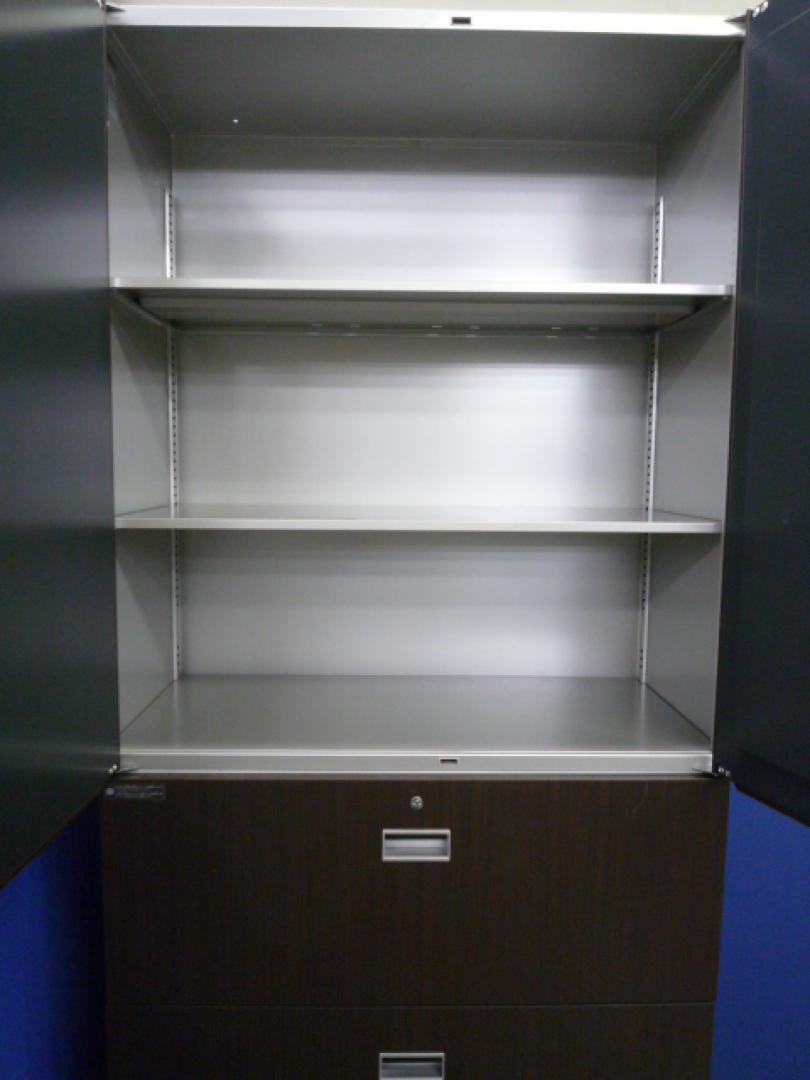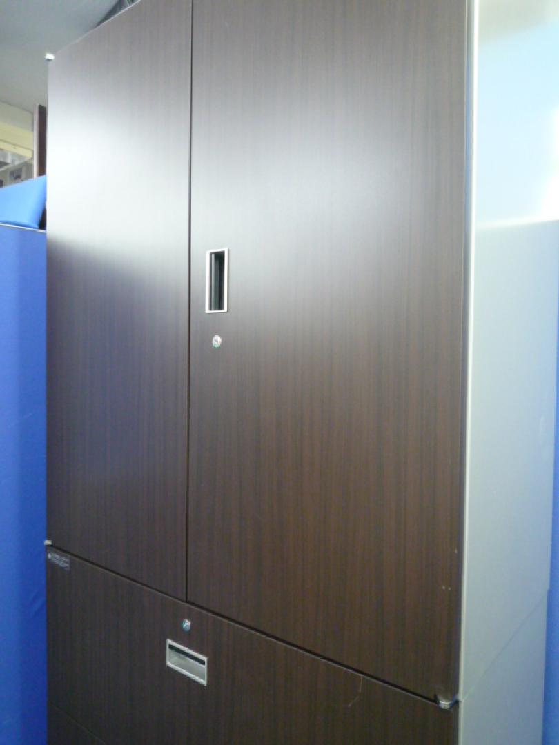 【大量入荷】上下書庫セット■両開き+3段ラテラル■高さ2140mm■表面ローズ色木目■エグゼクティブ空間にも■自宅でもおススメ- 埼玉本店