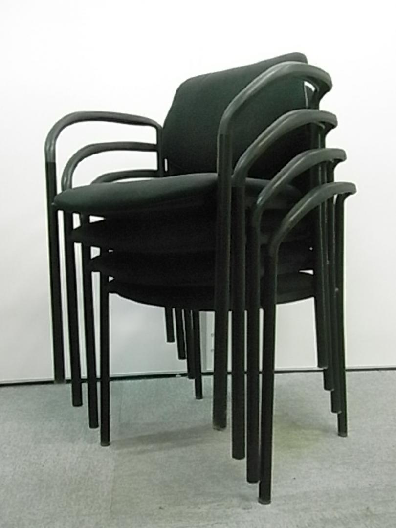 スタッキングチェア■ブラック 肘付 スタッキング可能 〜汚れが目立たないブラック〜【会議チェア】- 在庫数