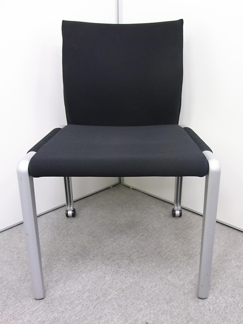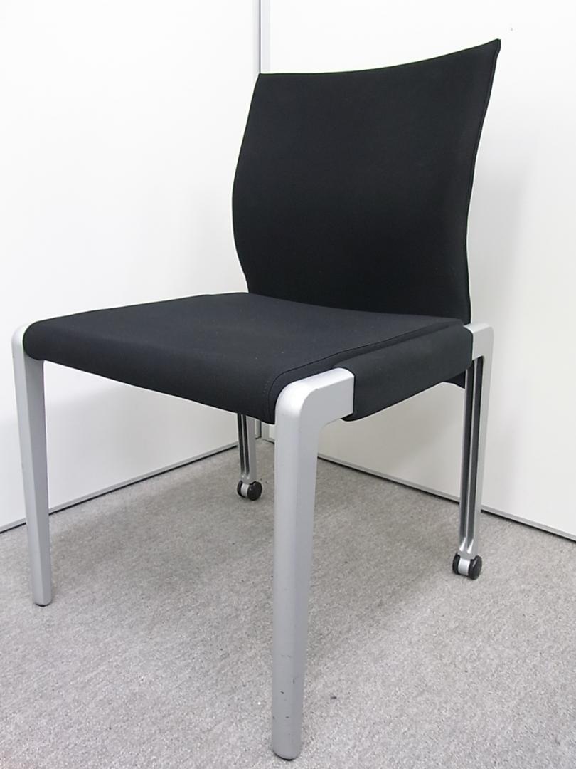 【4脚セット】【状態良好】ミーティングチェア 脚部(後)キャスター付き ■高級感のあるブラックカラー&シルバーフレームのコントラスト【江東区 墨田区 市川市 チェア】- 在庫数