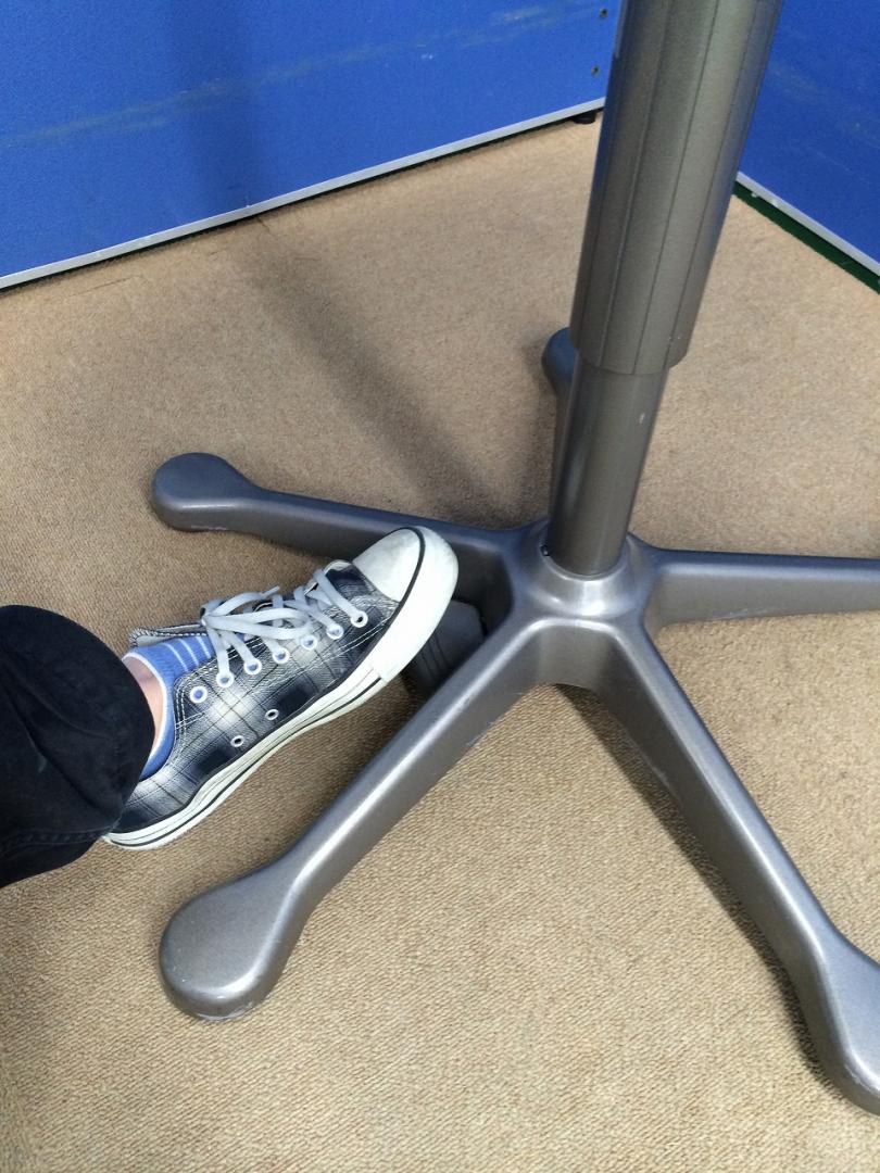 チェアはデスクの上や中に入れて保管しております。もちろん試座も可能ですので、お気軽にお申し付けください!