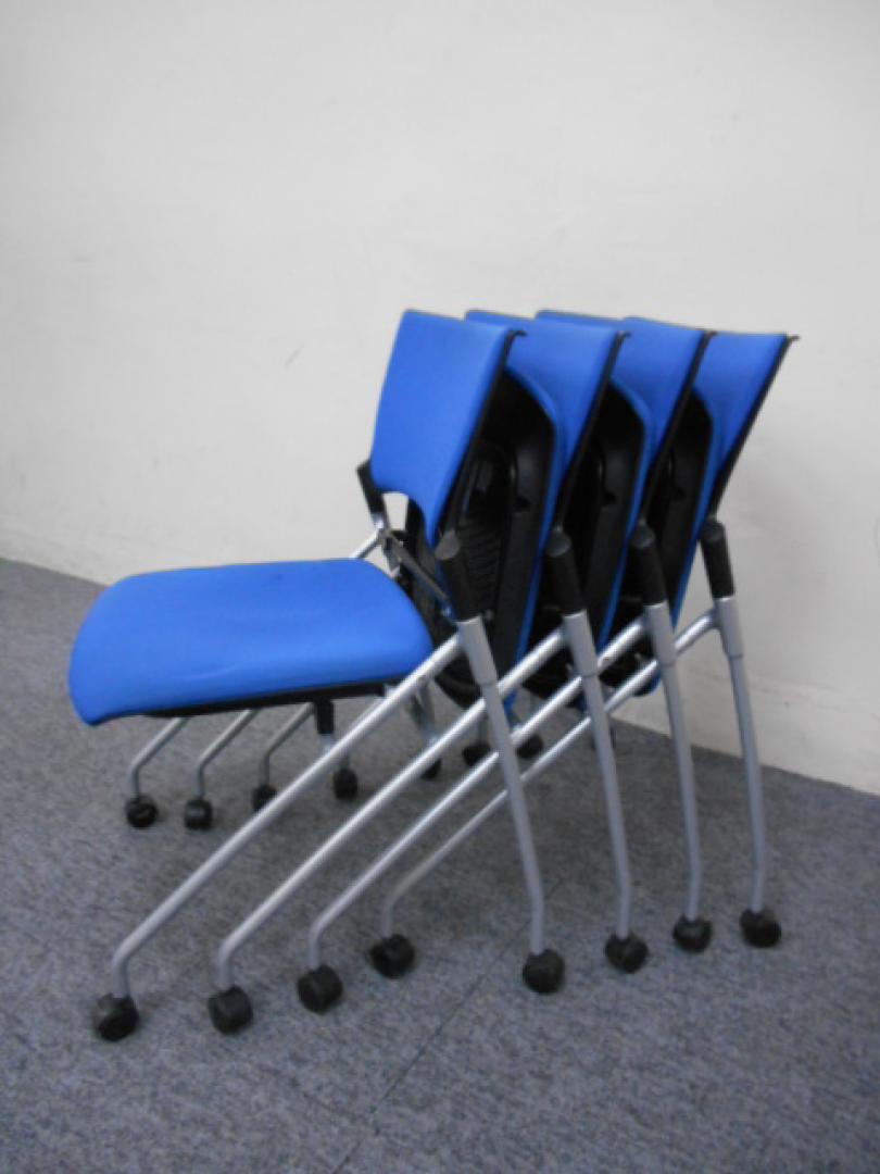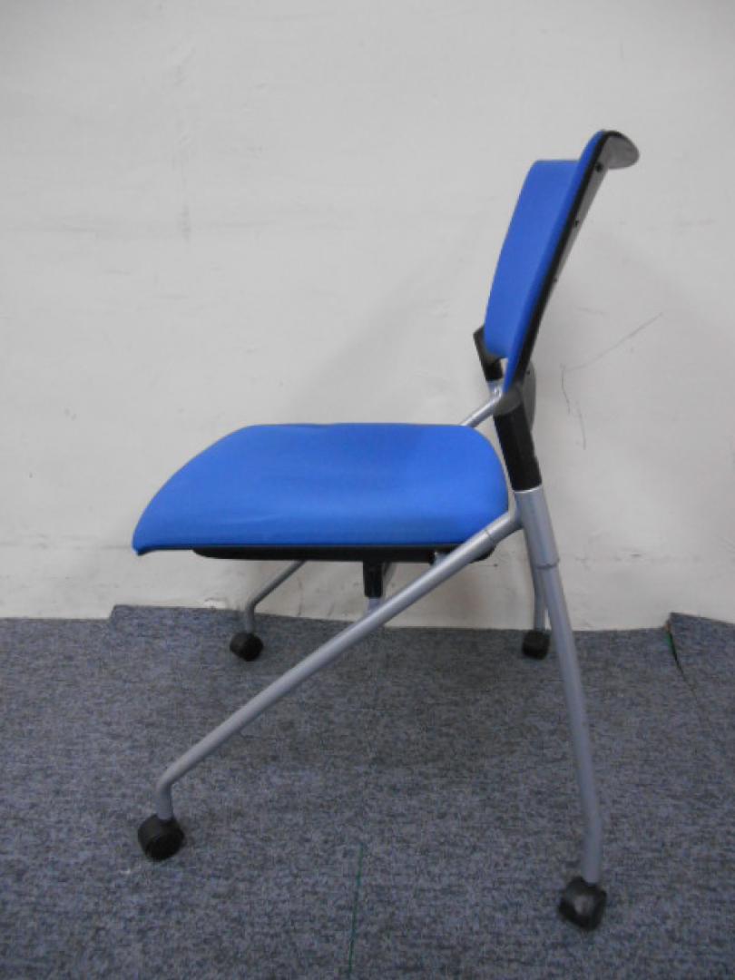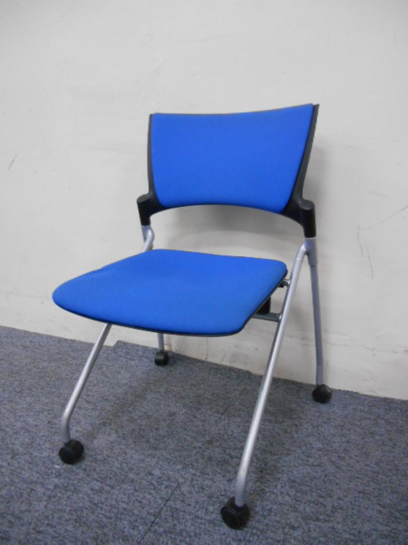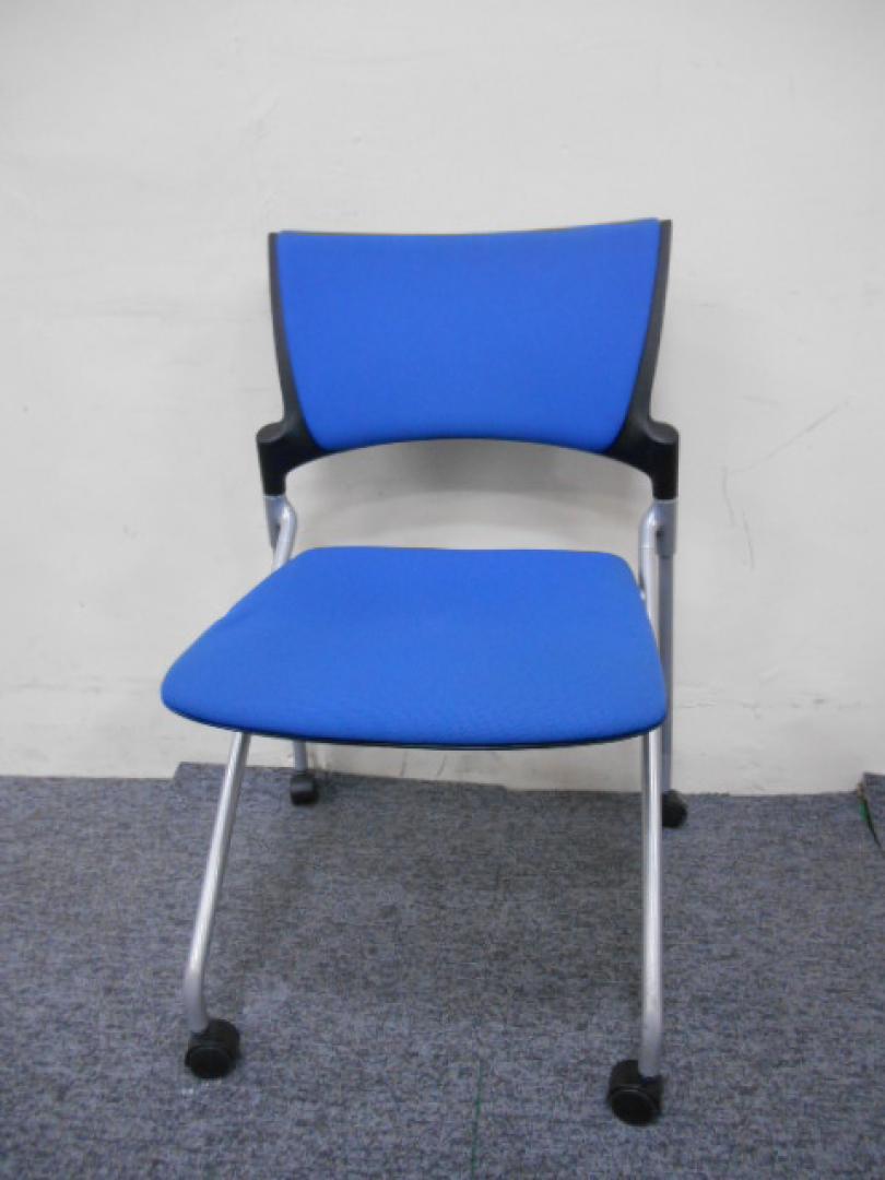 【定価6万円】【ソフトベンディングシェルが背を優しく受け止める!】■イトーキ(ITOKI) マノスチェア(MANOSS) 肘無し スタッキングチェア ミーティングチェア ■背パッド付 ■キャスター脚 ■ブルー