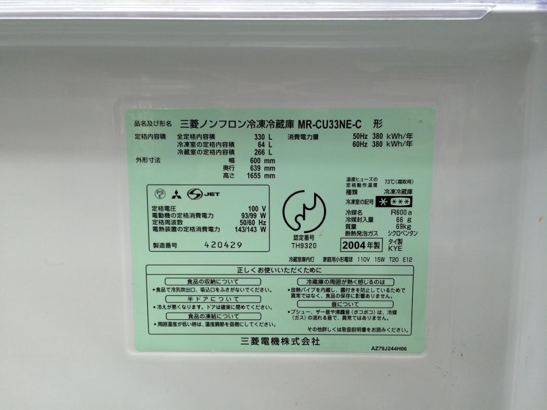 三菱製ノンフロン3ドア冷蔵庫