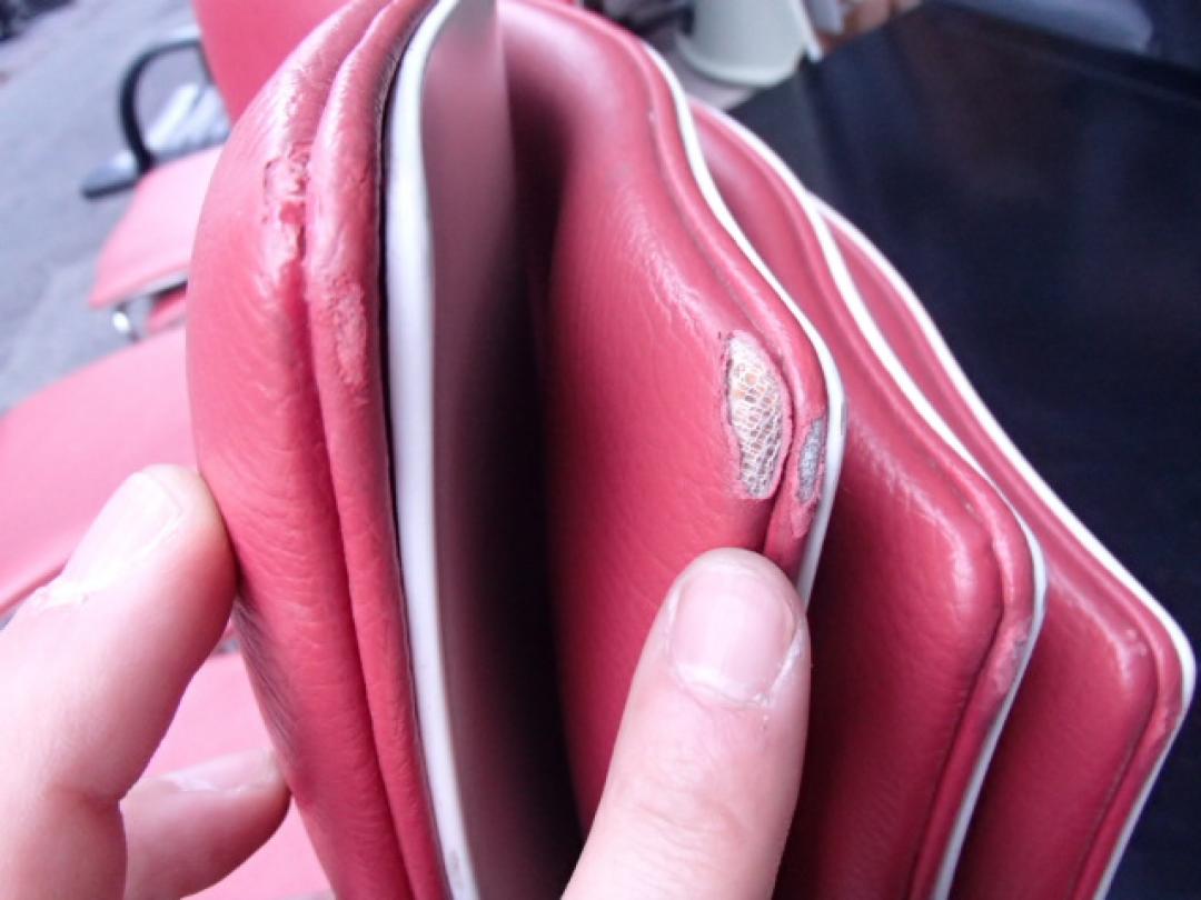 - あり黄ばみ・変色が広い範囲にうっすらある、または濃い黄ばみ・変色が一部ある。(例、座面・背もたれ、脚部等にある。)