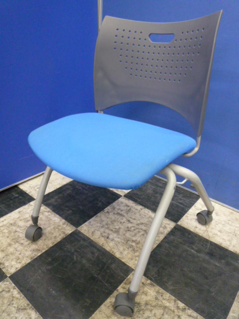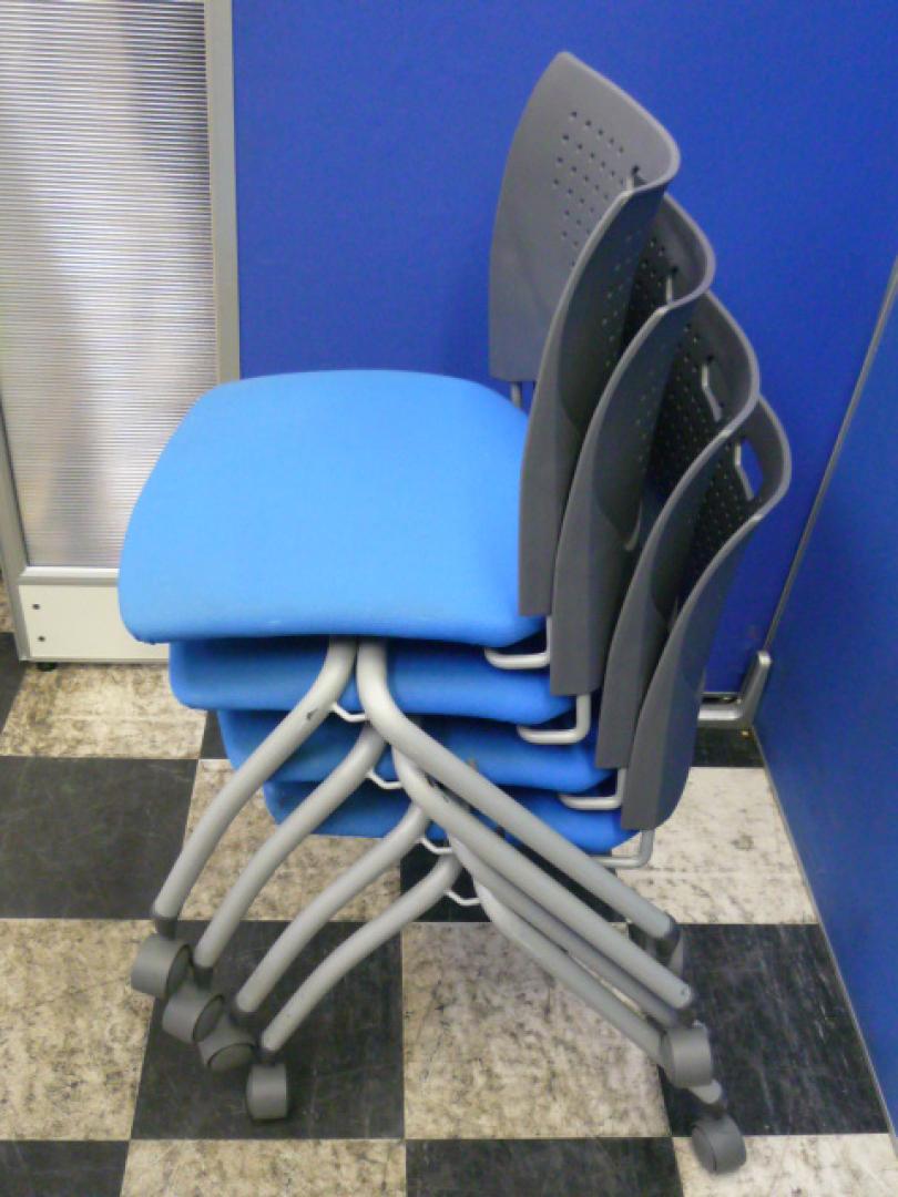 ■お買い得 セット商品■ 【状態良好】【人気 ブルー色】【キャスター付】【スタッキング可】【省スペース対応】 (事務用品 椅子 埼玉)- 埼玉本店