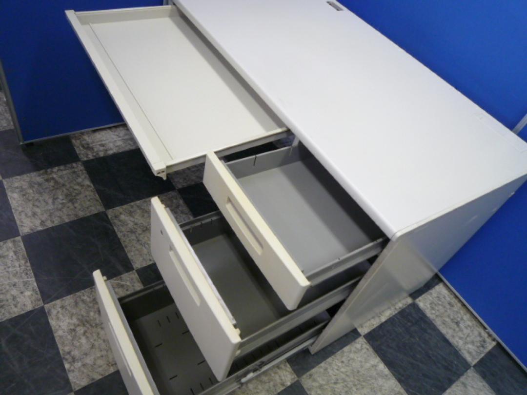 引出しは1段目が文房具等、2段目がB5ファイルサイズ、3段目がA4・B4ファイル両用となっており収納バリエーションに富んでおり便利です。
