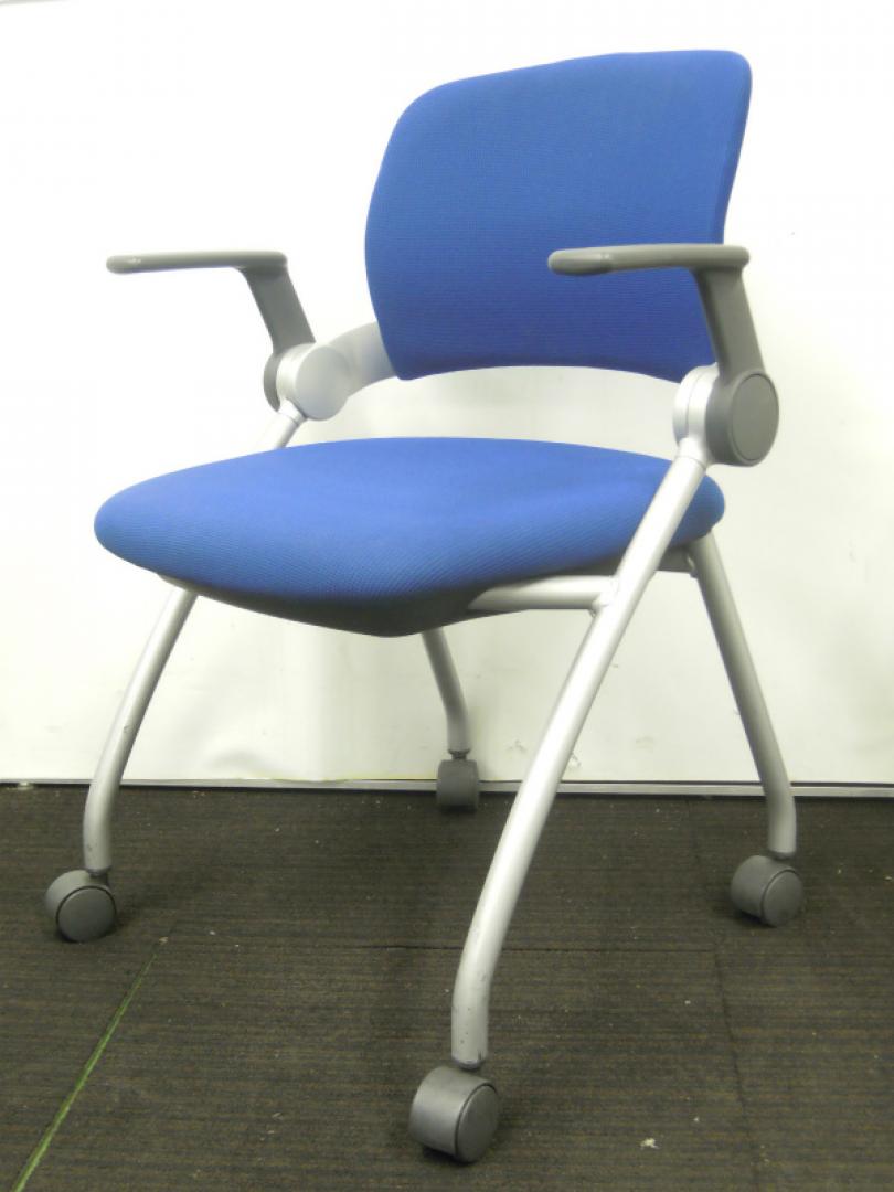 【8脚入荷!状態良好!】コクヨ製 ミーティングチェア CK-350C 肘付きキャスタータイプ ウルトラマリンブルー 【中古肘付きオフィスチェア】- 川崎店