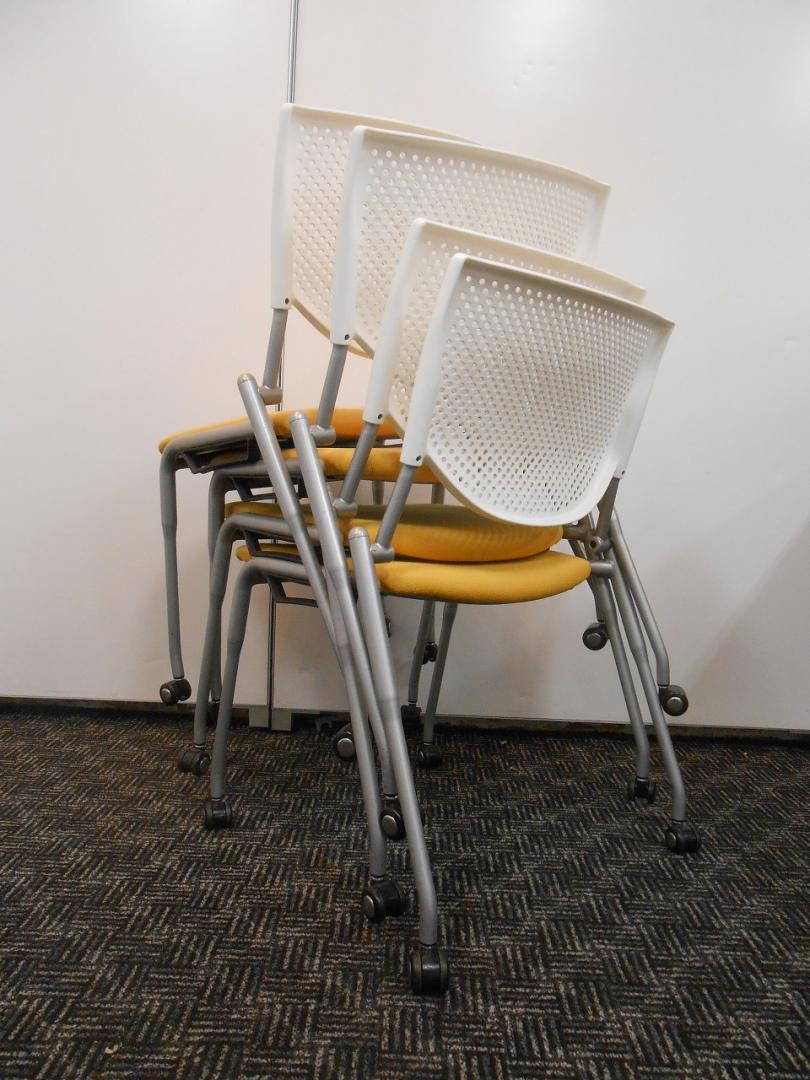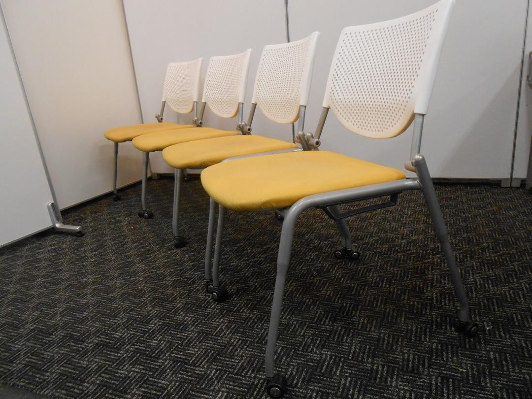 ■オカムラ製■スタッキングチェア■4脚セット■色:オレンジ&ホワイト■さわやかな色合いがオフィスに栄えます!■無くなり次第終了となります!■サーキュラーバリューCO2削減量の算出について