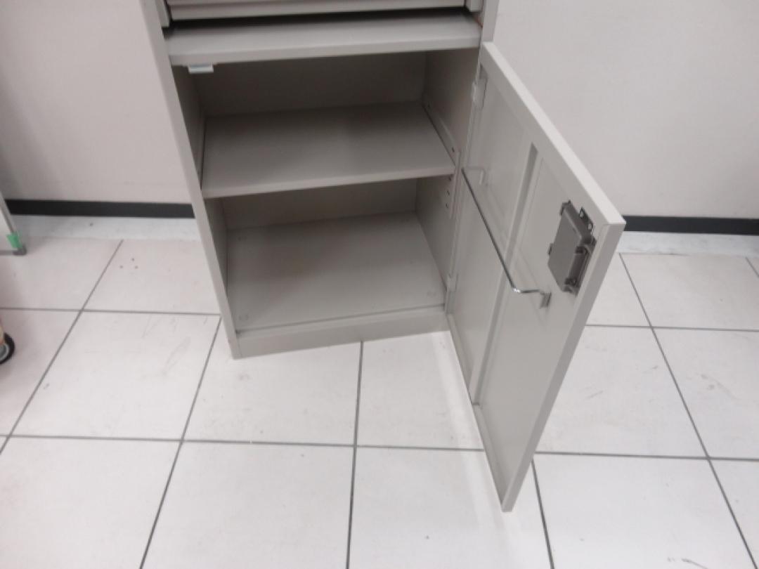 - 一部不具合ありそ引出の開閉不可、施錠不可、棚板無しといったの書庫の本来の効用を果たすための機能以外の一部が使用不可(例、扉、引出の開閉がしづらいなどがある。 )