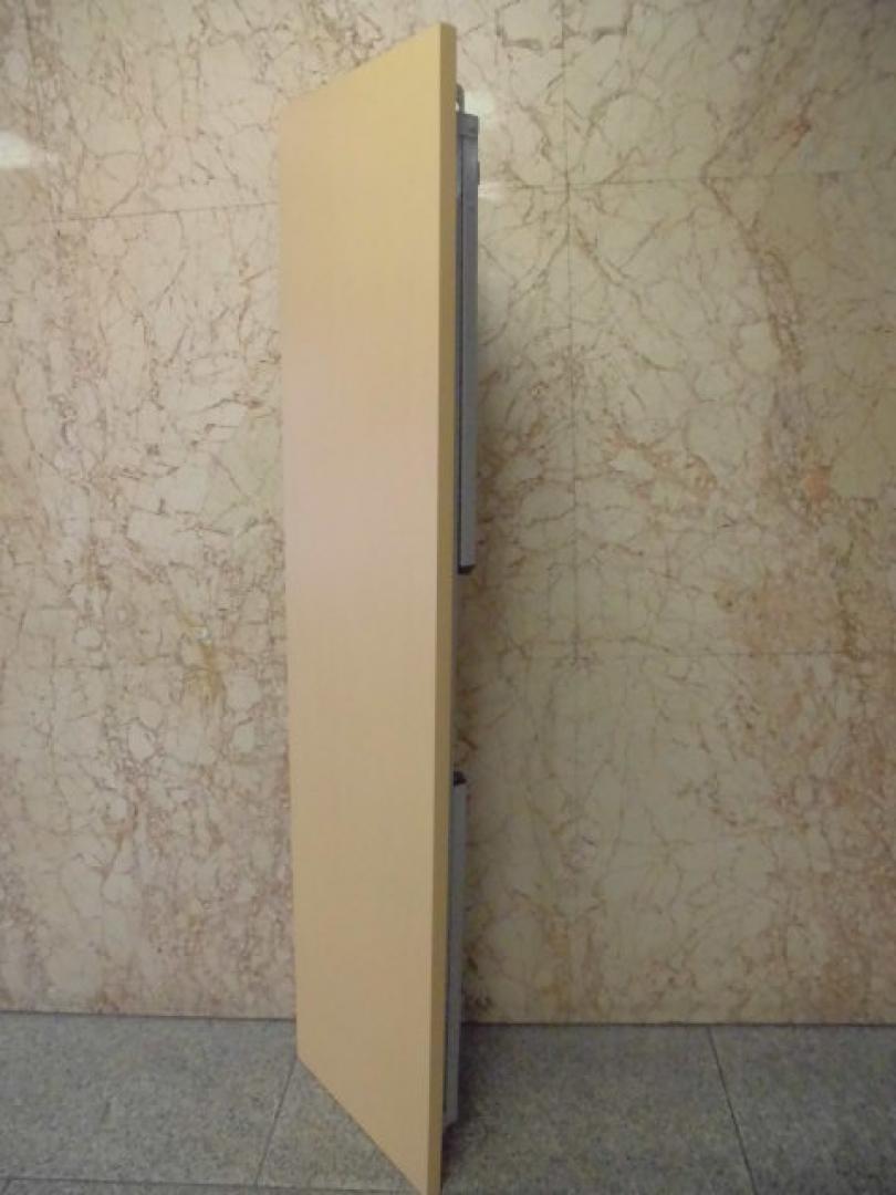 あり黄ばみ・変色が広い範囲にうっすらある、または濃い黄ばみ・変色が一部ある。(例、天板、幕板、棚板、サイド部分、脚部等にある。)