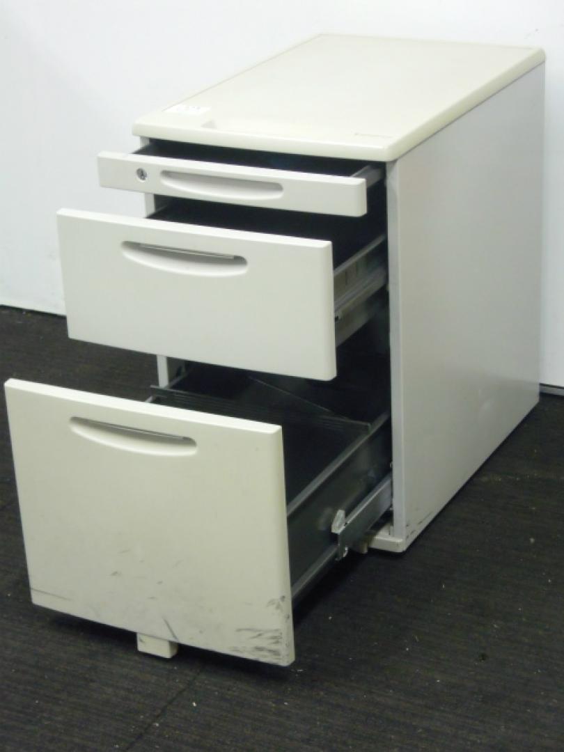 - 袖机のワゴンは、最下段がロング引出しになっており、従来より収納力120%アップ。