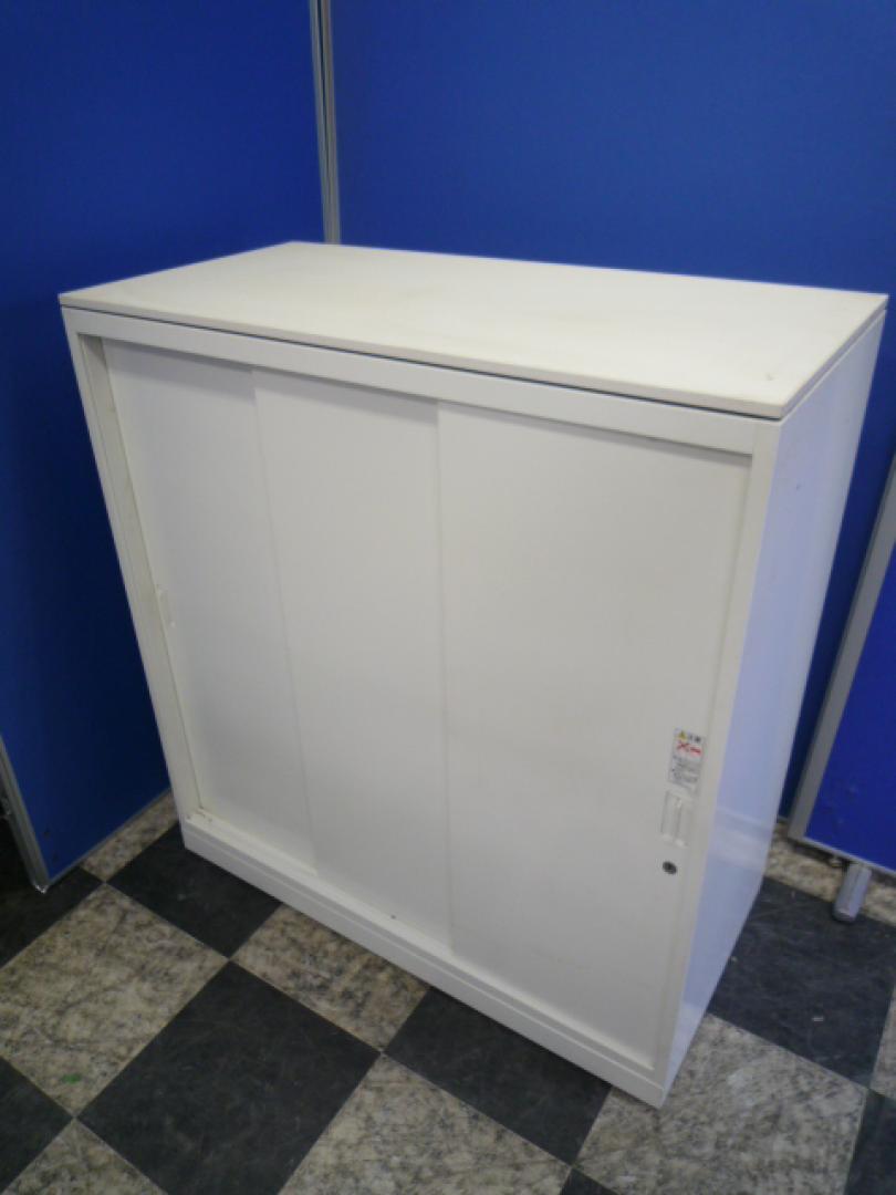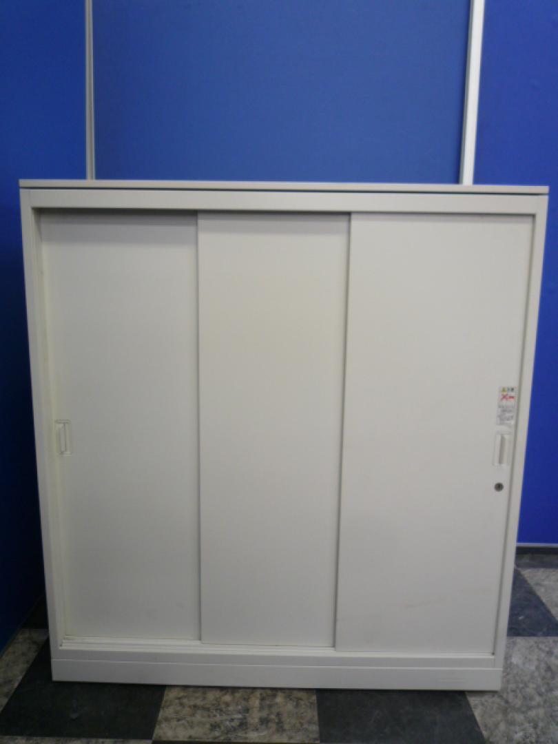 オカムラ製 人気レクトラインシリーズ ホワイト シリンダー W800xD450XH1050 3枚引戸 ※ベースなし 3枚引き違い書庫!!
