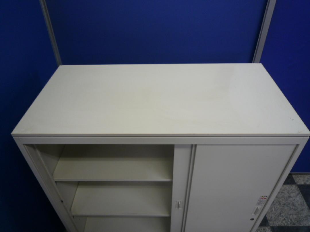 2枚引き戸書庫 オカムラ レクトライン 鍵付き シリンダー錠 ホワイト 天板無し スライド式の扉のため導線を邪魔しません