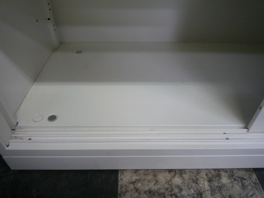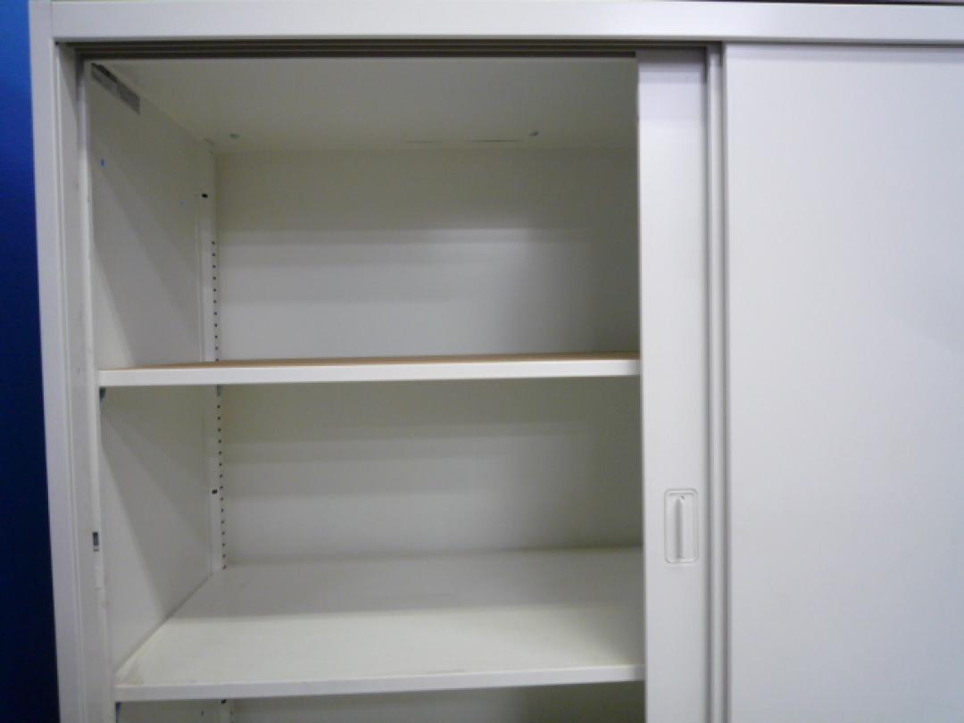 スライド式の扉のため導線を邪魔しません!使い勝手抜群の2枚引き違い書庫が入荷! ■オカムラ/レクトライン/ホワイト 2枚引き戸