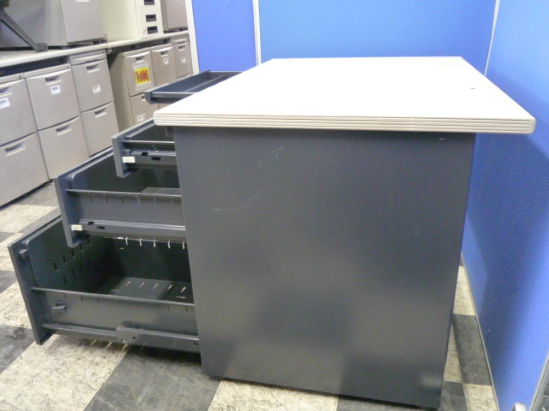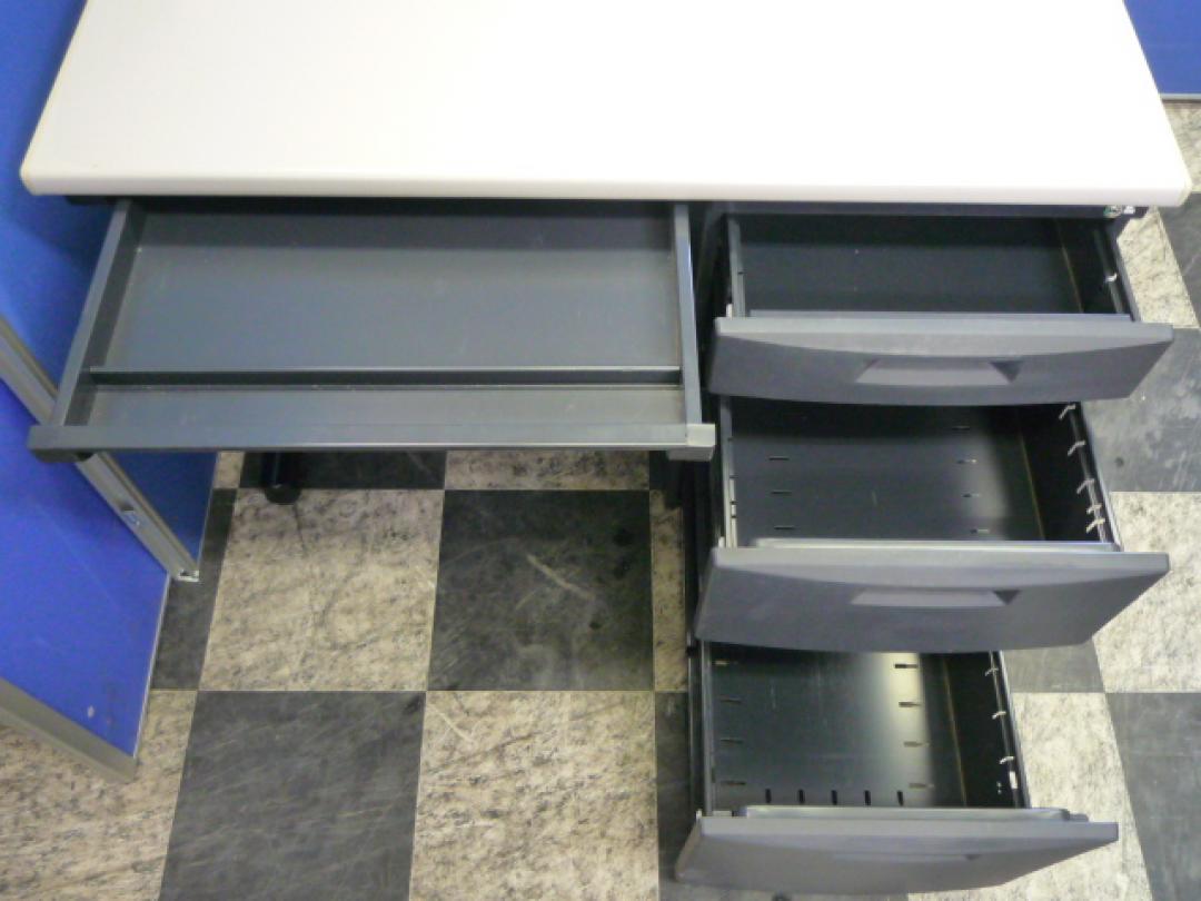 天板色はオフィスで人気のニューグレー。白に似た明るみと清潔感、さらに汚れが目立たないと良いトコ取りの色です。