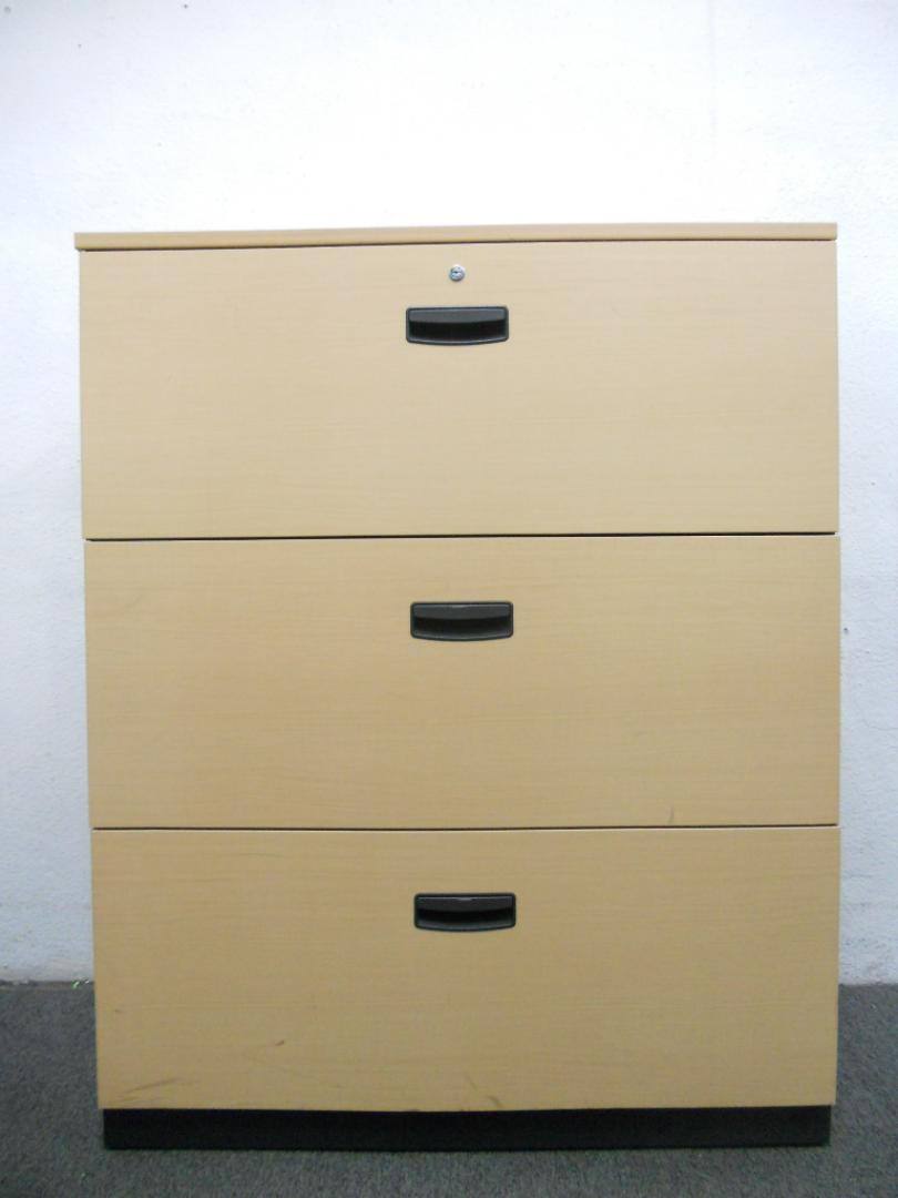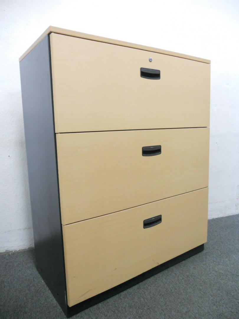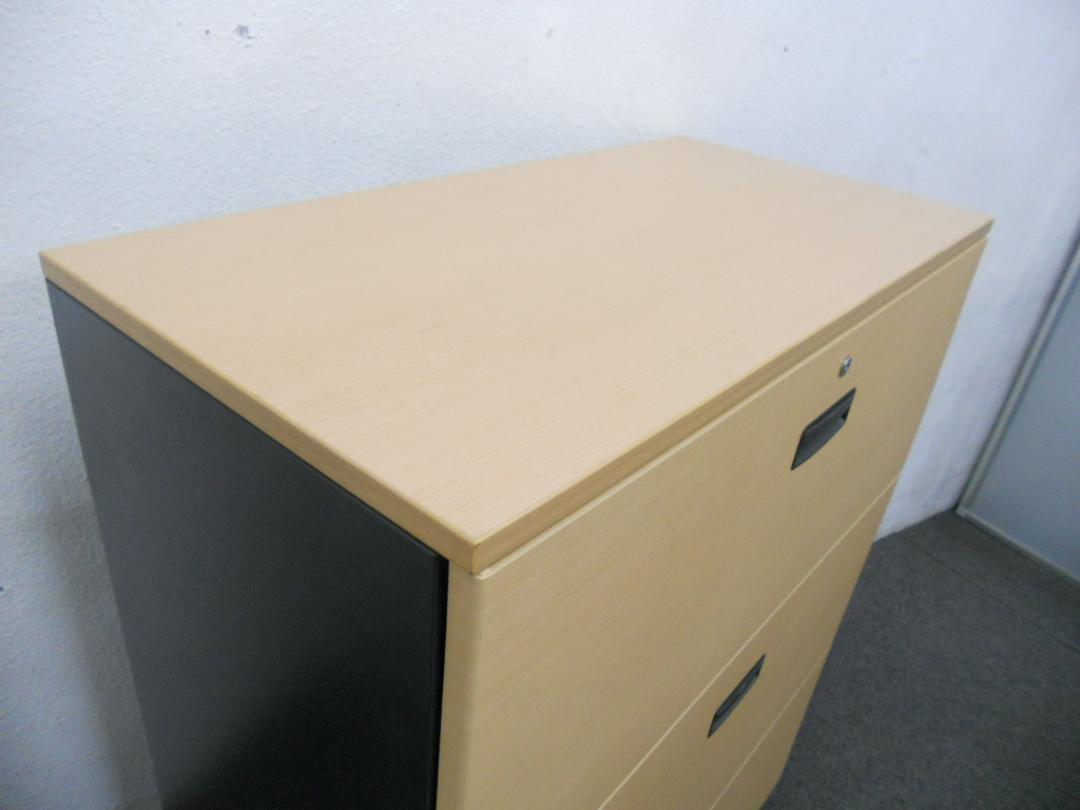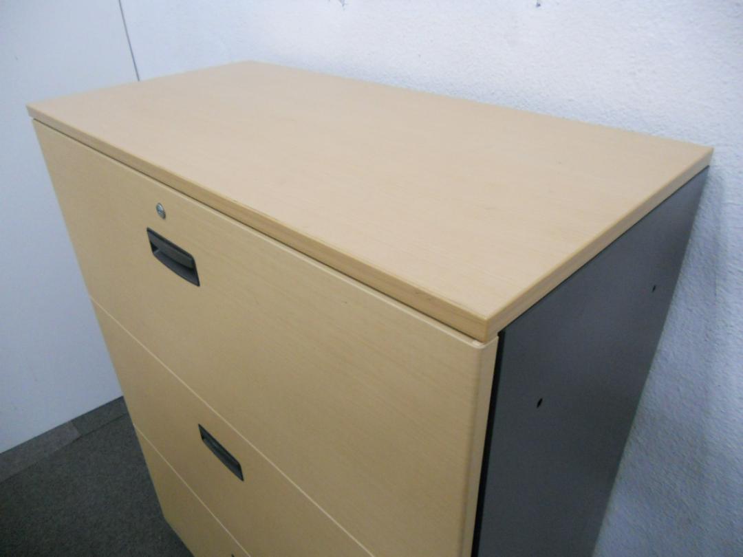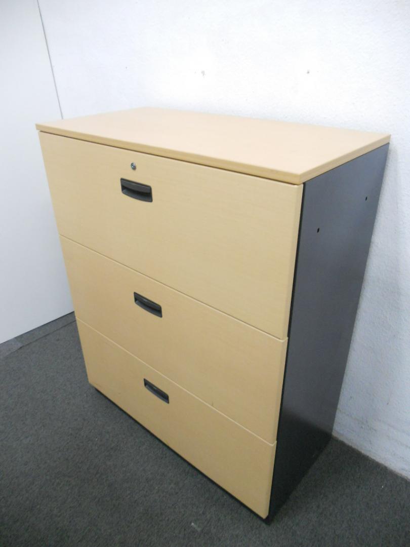 ■3段ラテラル書庫(鍵付) ■天板付 ■前面木目柄/本体ブラック ■イトーキ- 在庫数