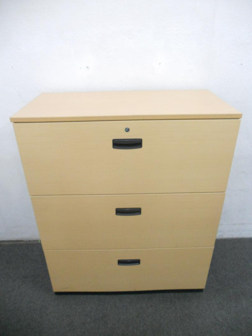 イトーキ製、木目柄の3段ラテラル書庫が新宿店に入荷しました。