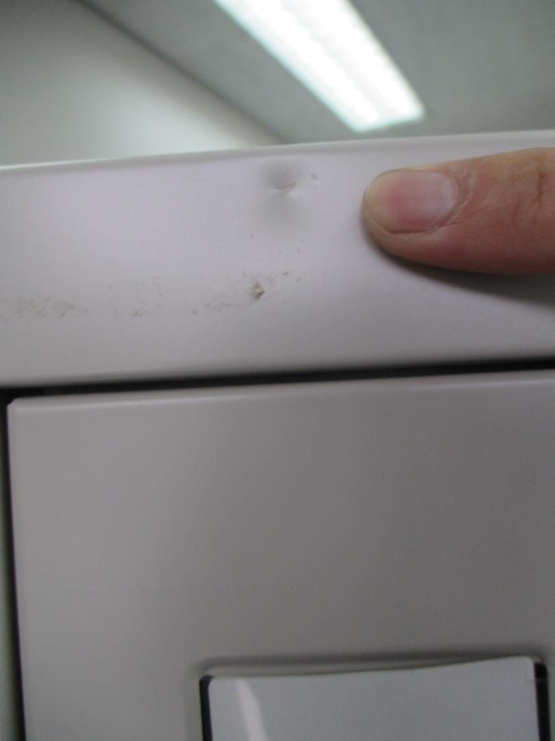 - 目立つ箇所あり傷・凹みが多数、深い傷・凹みが一部ある。(例、天板、正面、背部、サイド部分にある。)