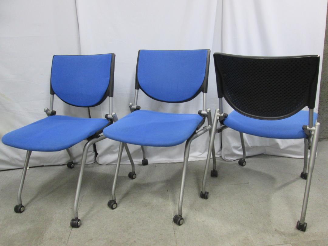 オカムラ製ネスティングチェア 不要な時は重ねて収納できます! キャスター付きで移動も楽々! お得な3脚セット商品 【セット商品】- 横浜本店