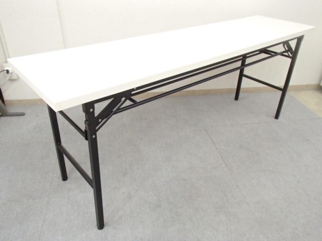 折り畳みテーブル|天板 ホワイト|幅 1800 奥行き 450 高さ 700脚部分のアジャスター調整でデコボコな場所でも