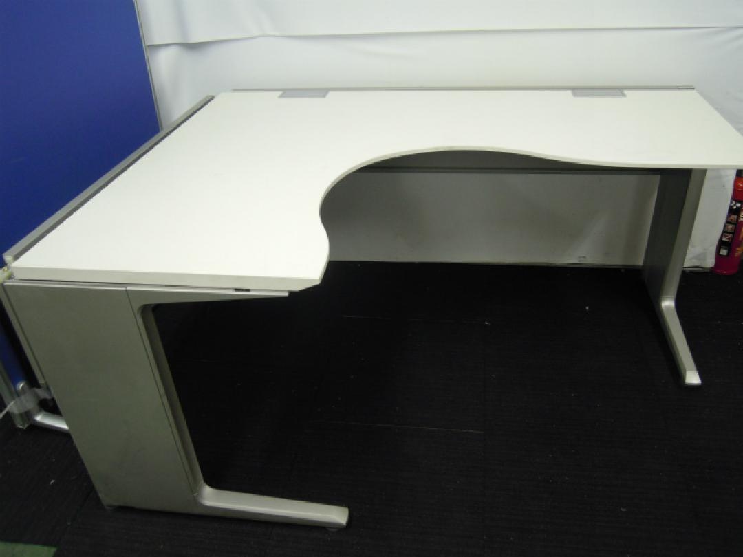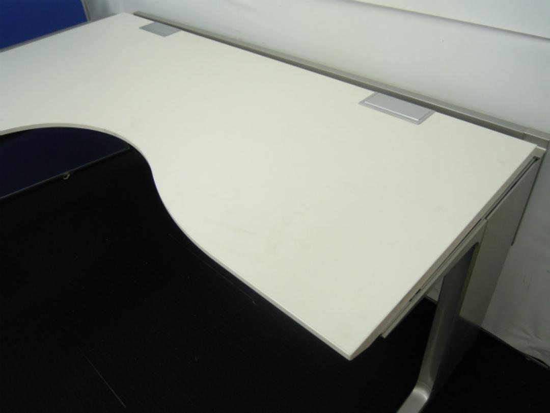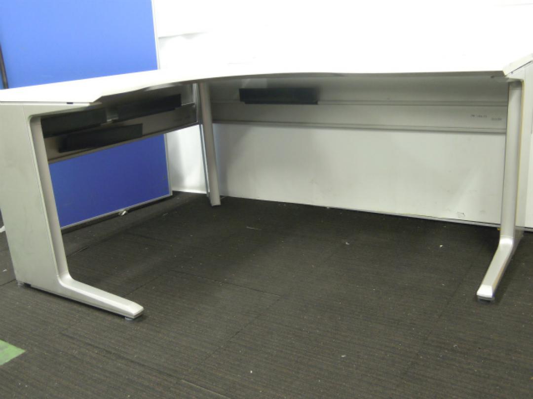 【1台入荷!中古希少在庫】L字デスク 左ラウンド 幅1600 奥行1200 ホワイト スタンダード天板 幕板つき L字脚 ※配線キャップ3点欠けてます【中古オフィス家具 事務机】- 川崎店