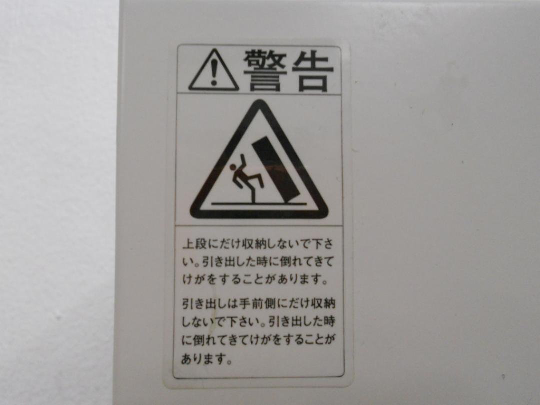 - 一部不具合ありそ引出の開閉不可、施錠不可、棚板無しといったの書庫の本来の効用を果たすための機能以外の一部が使用不可(例、扉、引出の開閉がしづらいなどがある。 )