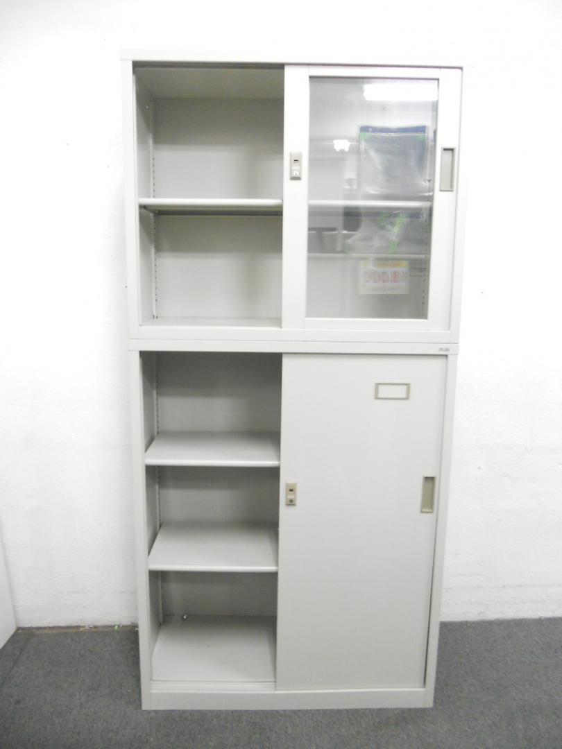 ■書庫セット ■上:ガラス引戸/下:スチール引戸 ■プラス(PLUS)- 在庫数