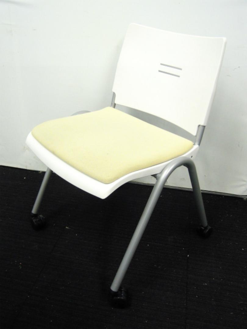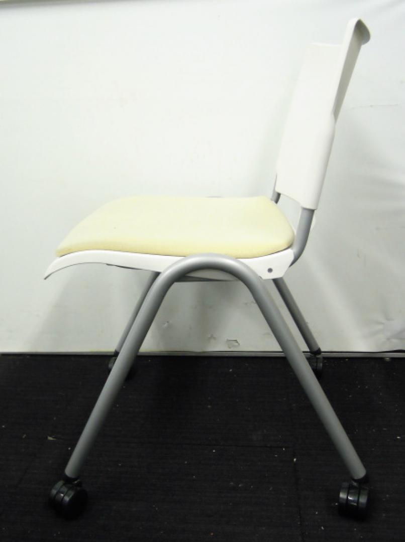 【セット商品】【4脚セット】スタッキングチェア キャスター付き 座面クリームカラー 2012年製【中古オフィスチェア 会議用チェア ミーティングチェア】- 川崎店
