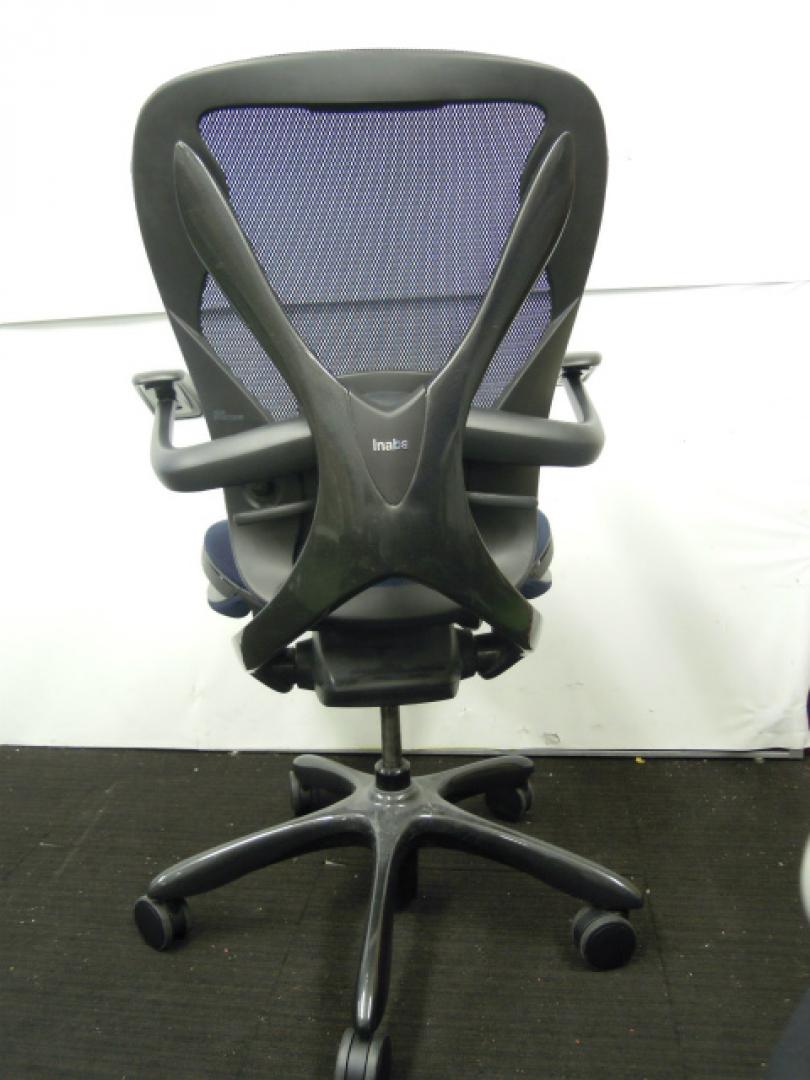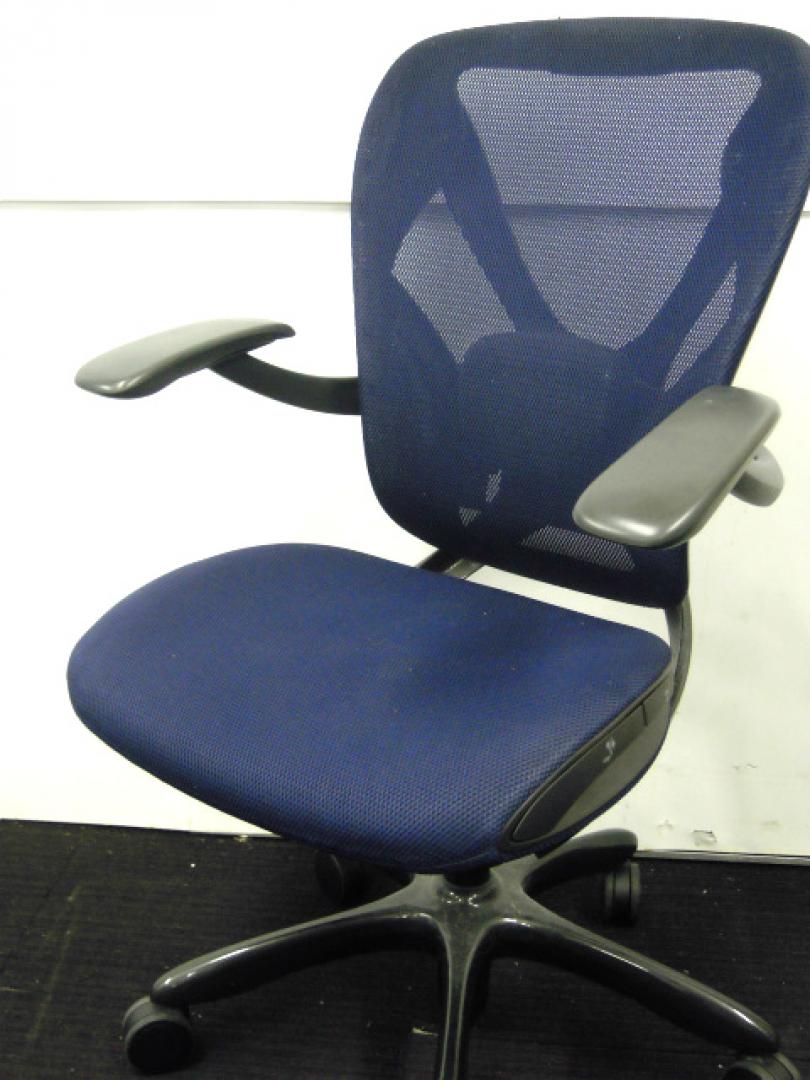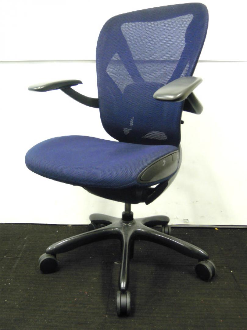 【肘可動肘の両方が壊れております】稲葉製作所製 メッシュオフィスチェア エクセア インディゴブルー スパークリングブラックフレーム 【中古肘付きオフィスチェア 事務用回転イス】【おつとめ品】【高級チェア】- 川崎店
