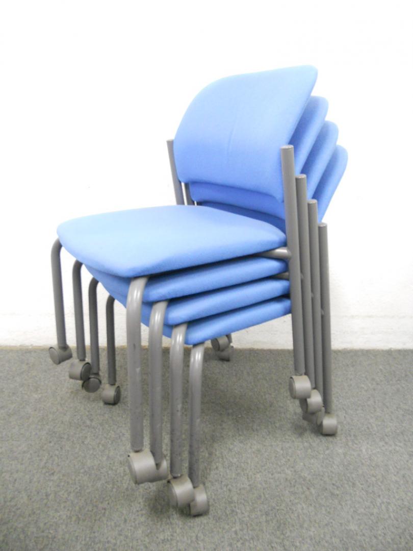 ■スタッキングチェア4脚セット ■キャスター付 ■ブルー ■コクヨ(KOKUYO)【セット商品】- 在庫数