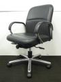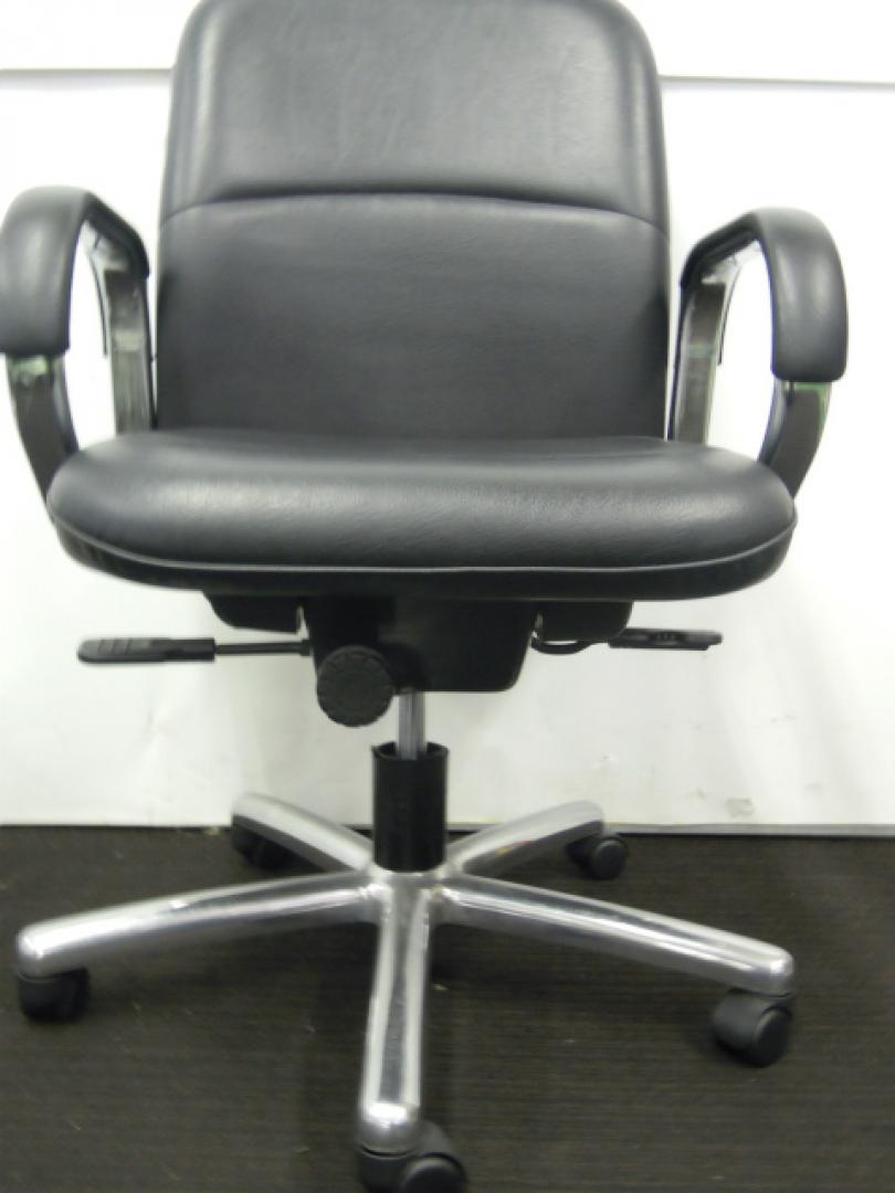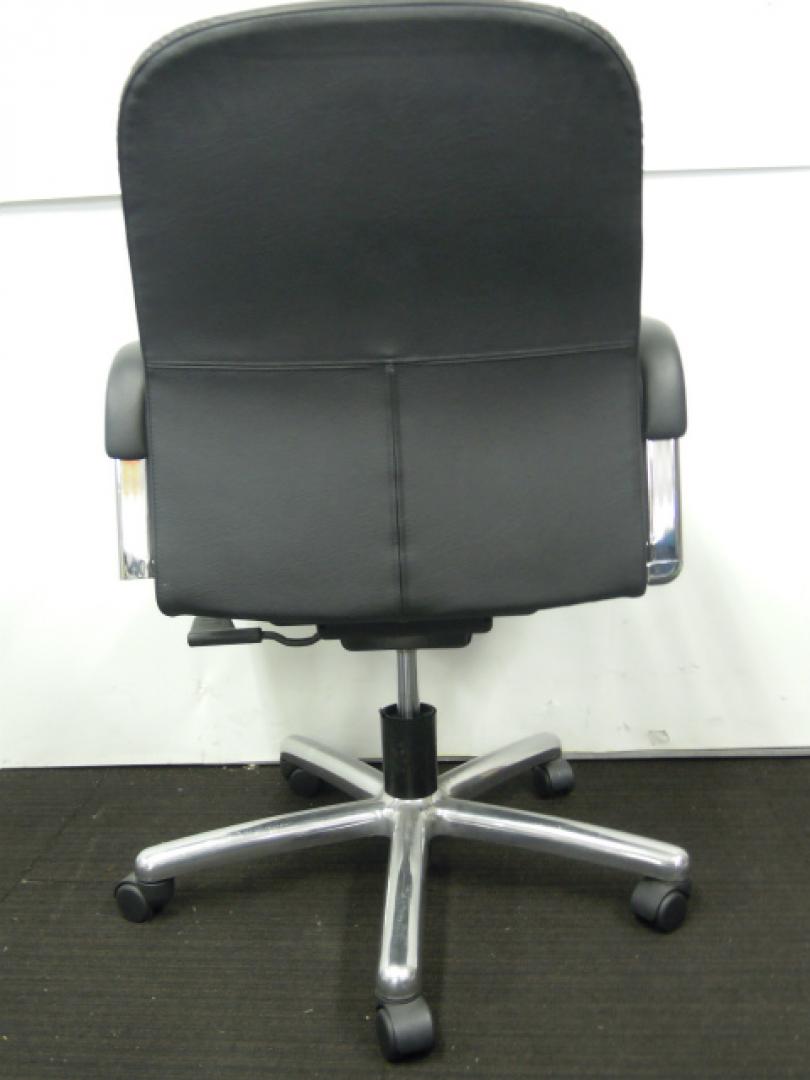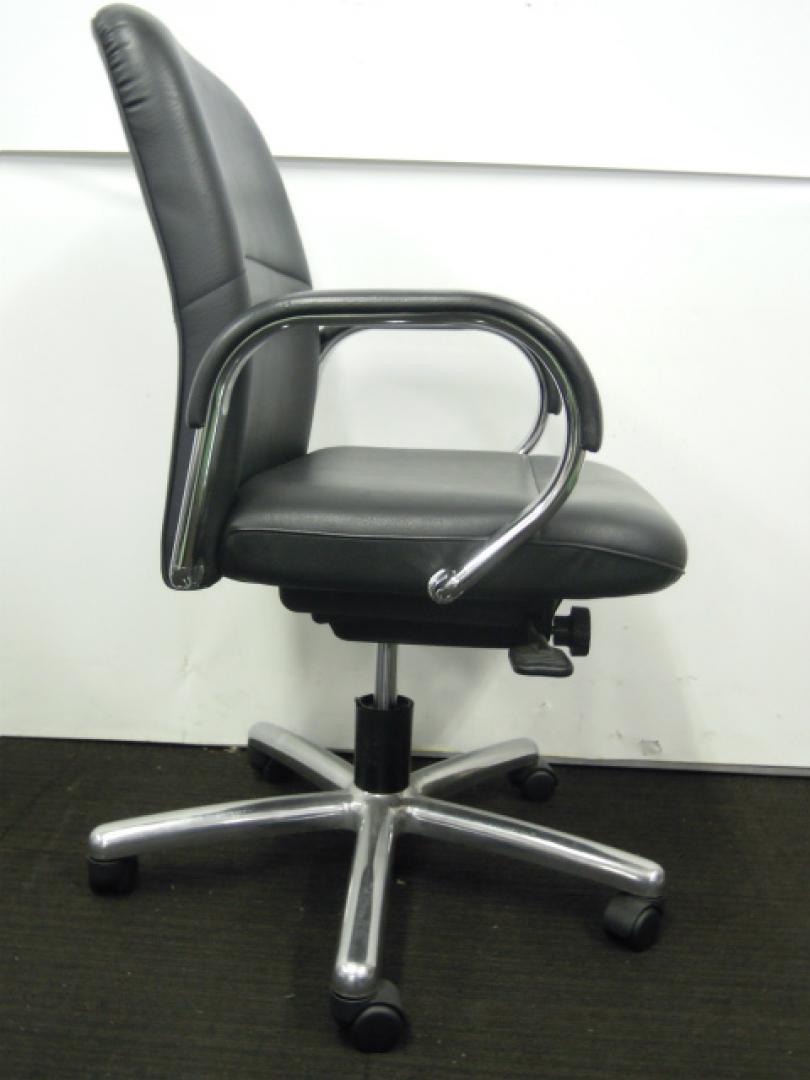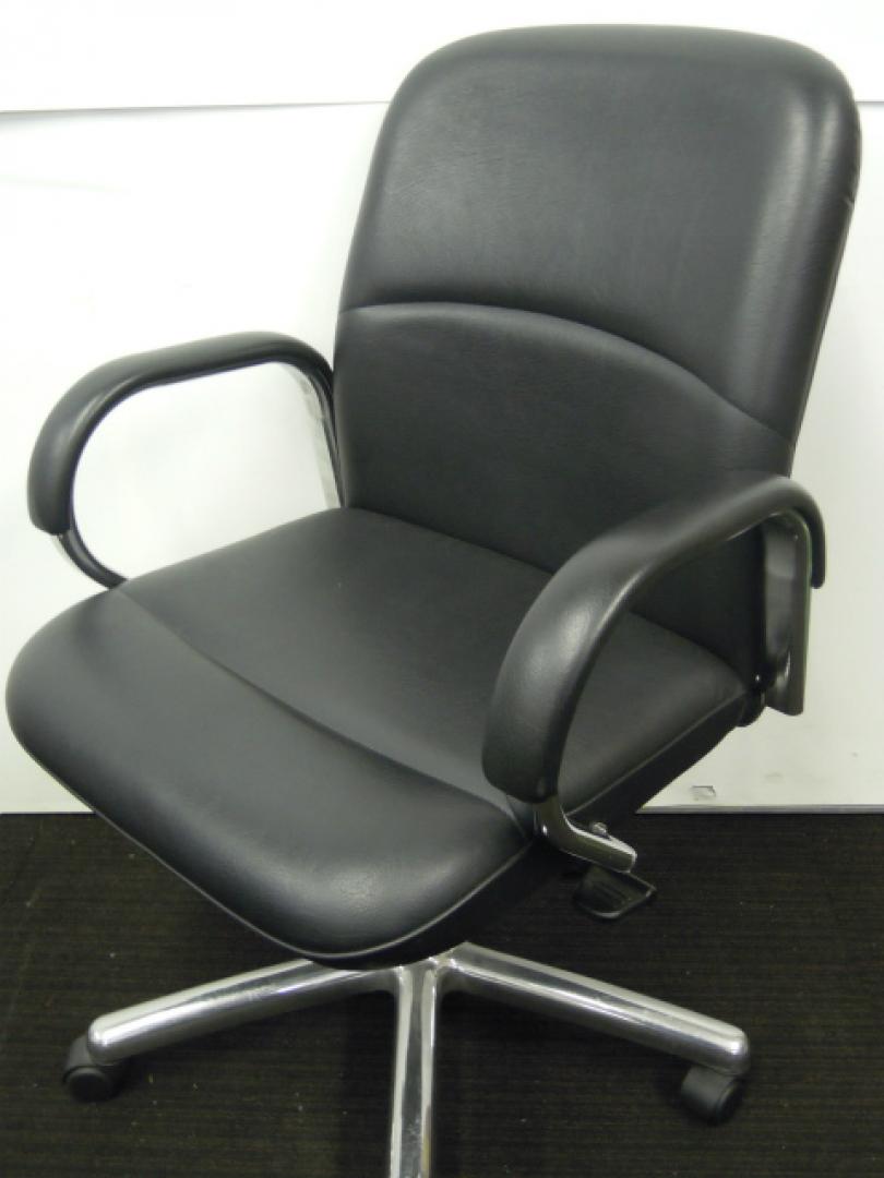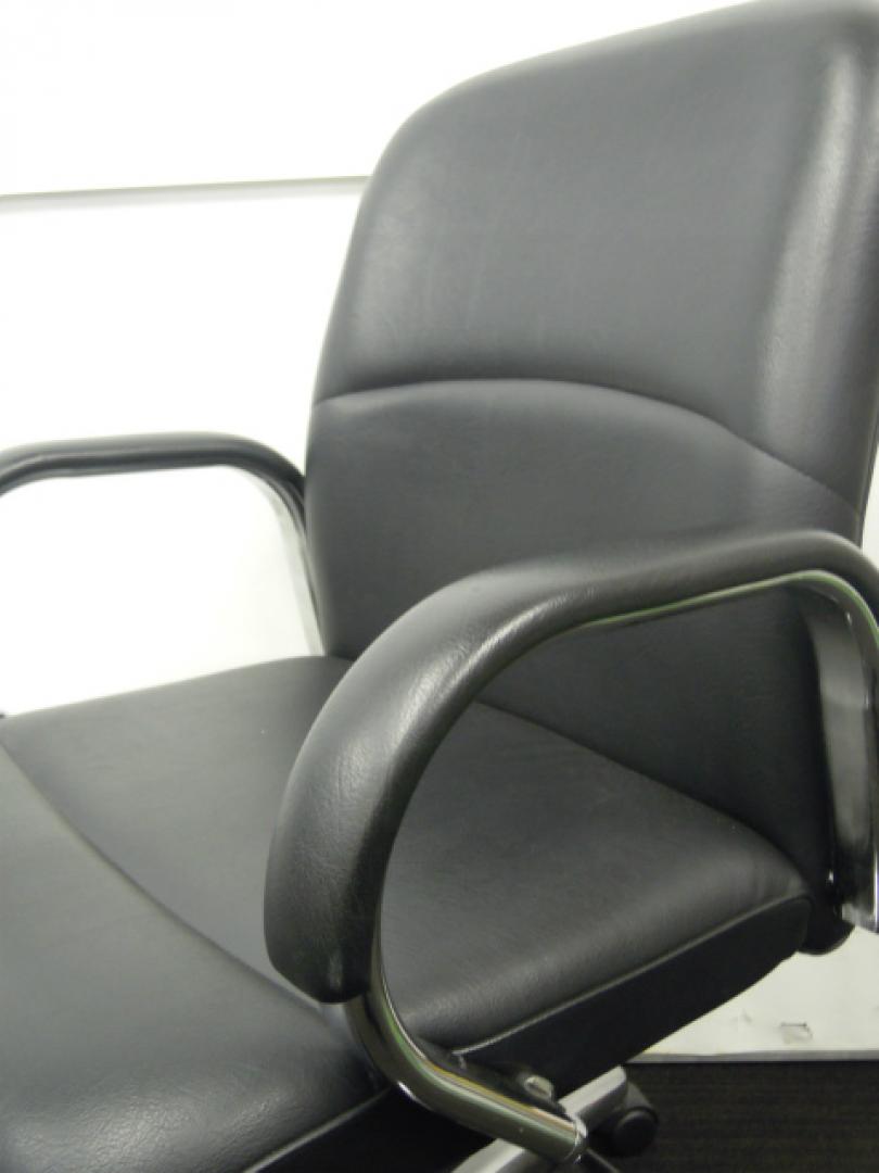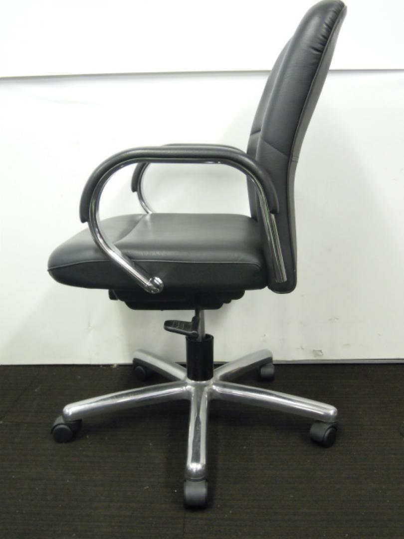 【2脚入荷!】内田洋行製 肘付きエグゼクティブチェア ローバック オープン肘タイプ コラーゲン入りレザー張り 【中古オフィス家具 肘付きチェア】- 川崎店
