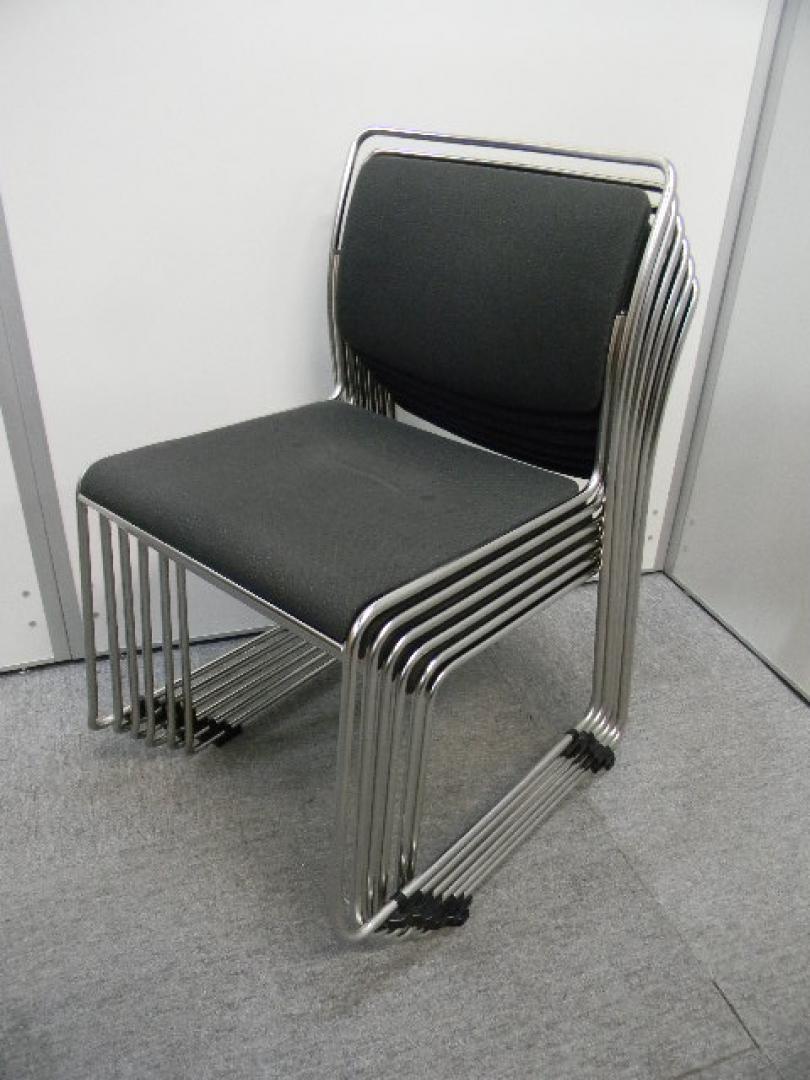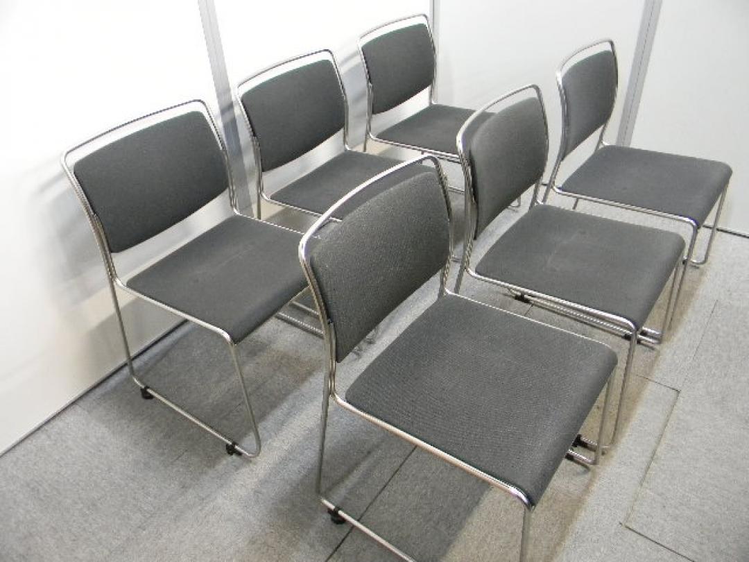 スタッキングチェア 6脚セット■ ブラック 〜シンプルな布張りチェア〜【セット商品】- 在庫数