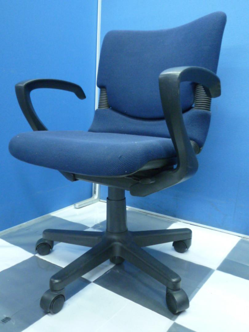 【状態良好】肘付きローバックチェア■デザイナーズチェア■機能充実■ダークブルー【オフィス家具 チェア イス 埼玉】- 埼玉本店