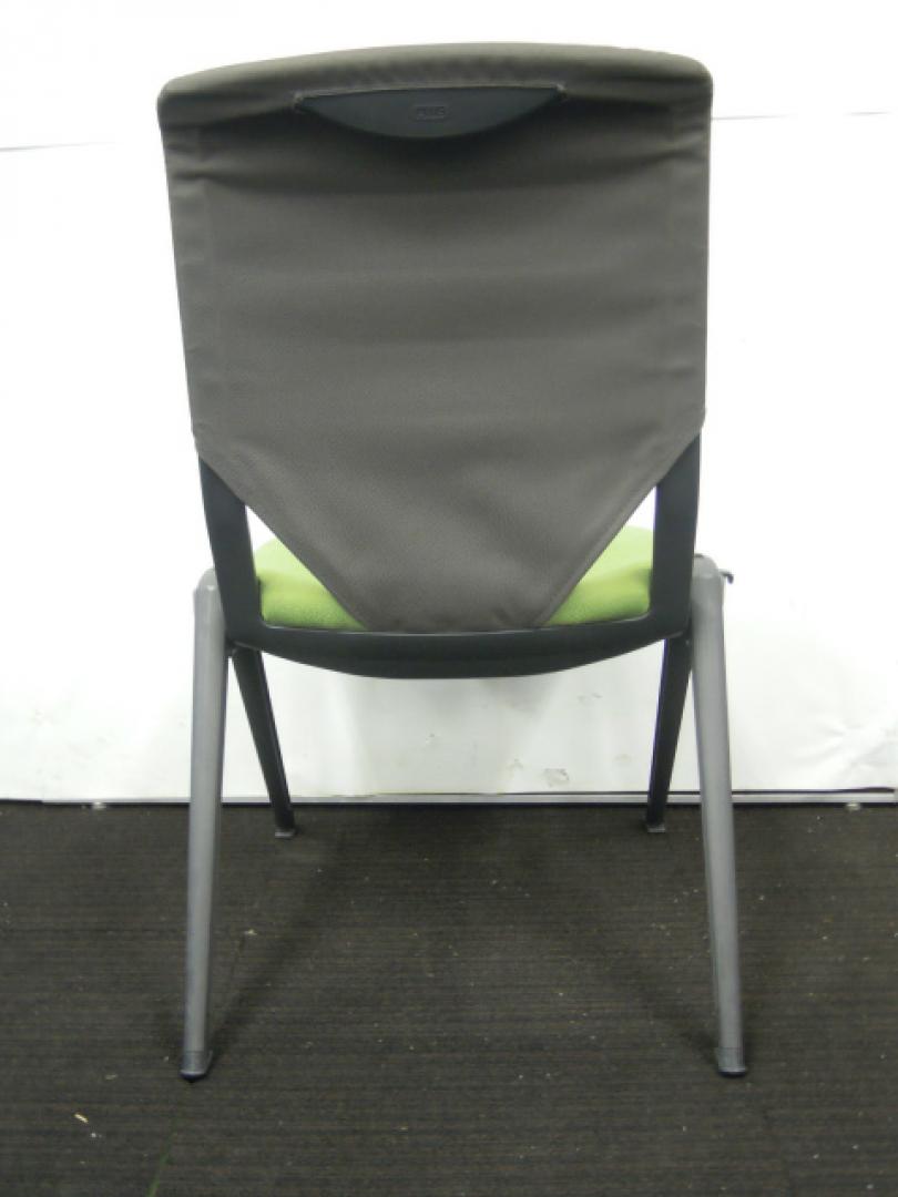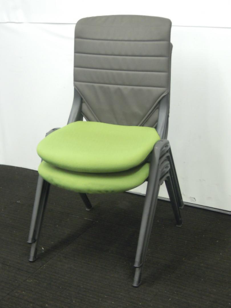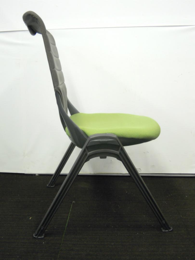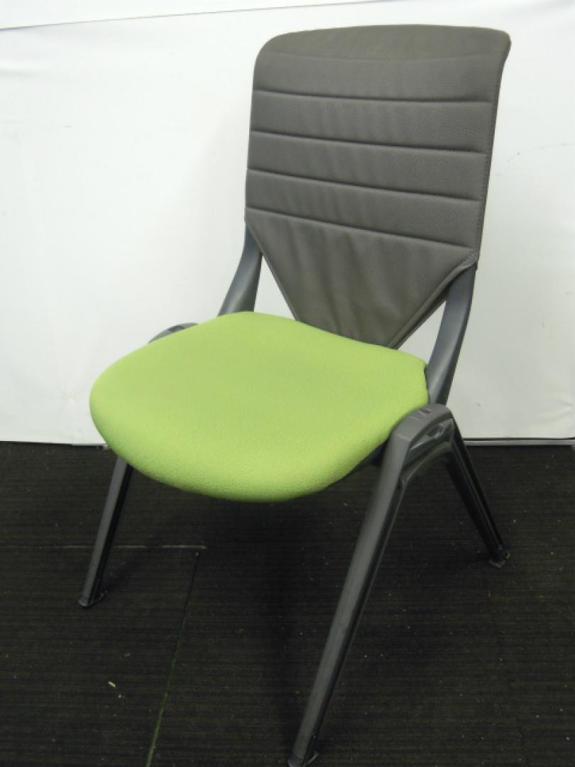 【2脚限定特価!状態良好】プラス製 ミーティングチェア 椅子 会議チェア カイノス チェア 肘なし スタッキング ライムグリーン×ダークグレー【中古オフィスチェア】- 川崎店