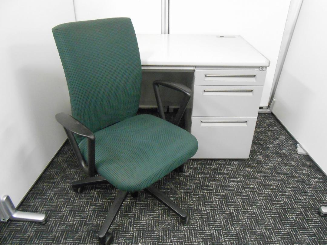 【在庫6セット!】片袖デスク 幅100cm × 肘付きOAチェア モスグリーン色 【セット商品】【ロット】- 在庫数