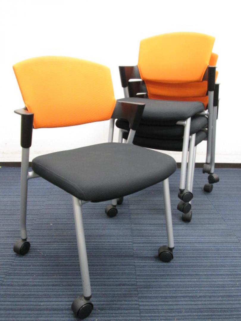 【シンプルスマートなスタッキングチェア!】■コクヨ(KOKUYO) プロッティ(Protty)チェア スタッキングチェア ミーティングチェア ■肘付き キャスター付き ■オレンジ【2505】弊社使用欄【A01018053】