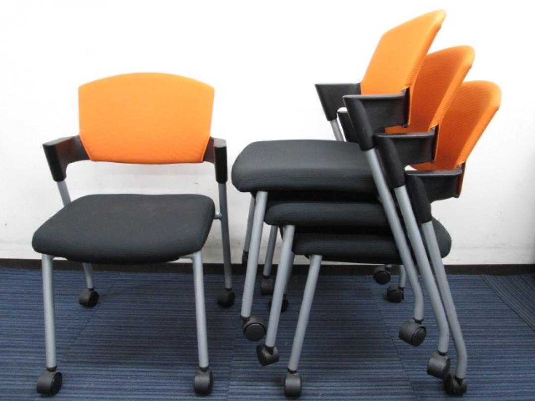 ■スタッキングチェア4脚セット ■キャスター付 ■オレンジ ■コクヨ ■プロッティシリーズ【セット商品】【会議椅子】- 日本橋店