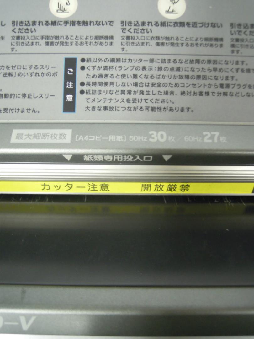 最大細断枚数 *(1) A4コピー用紙 30枚[50Hz] 27枚[60Hz]