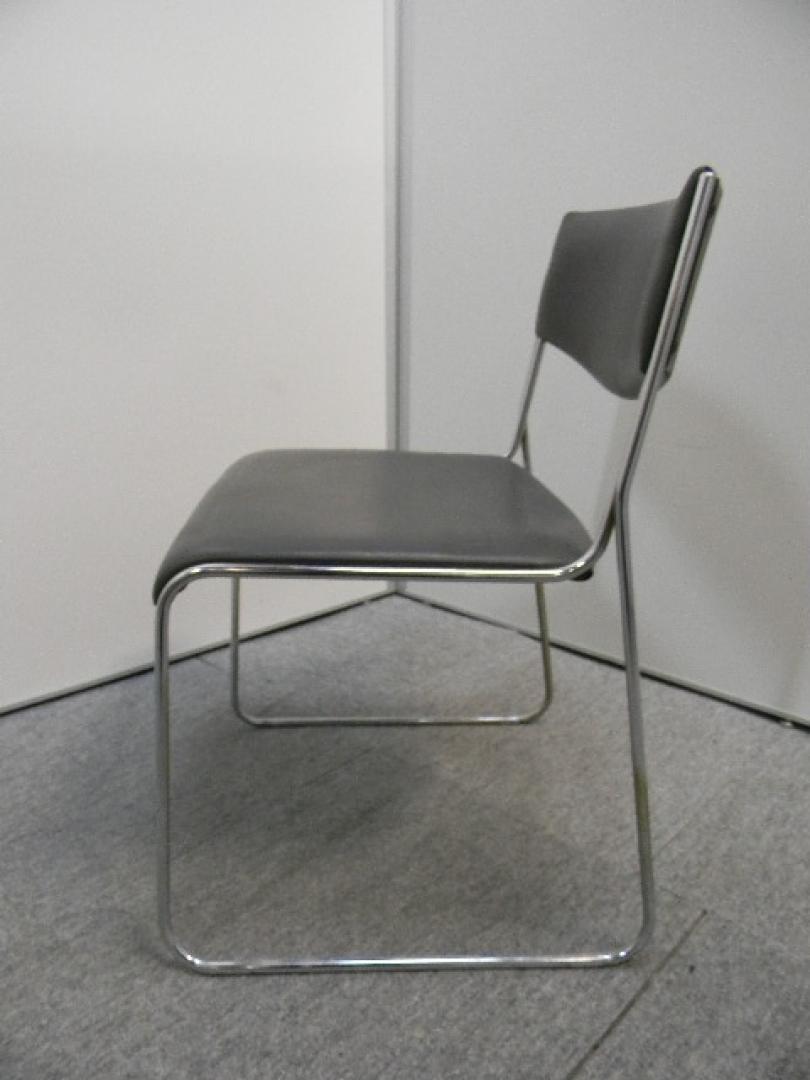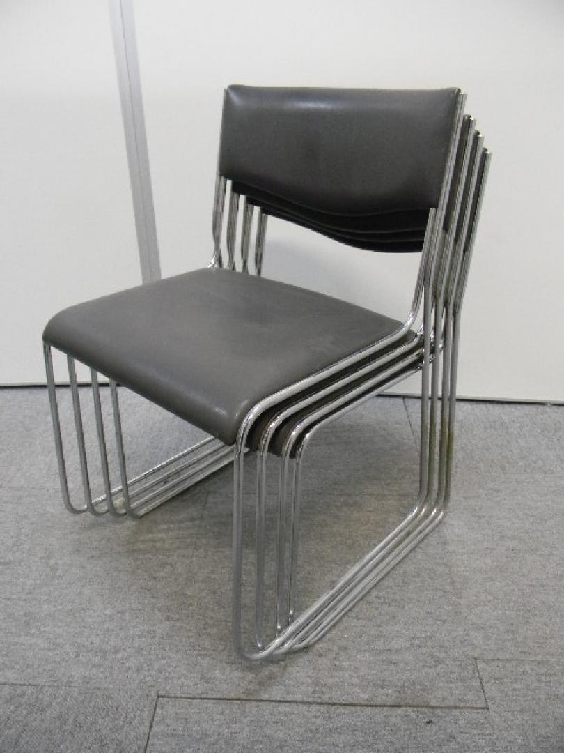 【8脚揃いであります!!】ミーティングチェア ■ダークグレー スタッキング可 〜ビニールレザー張地のチェア〜- 在庫数
