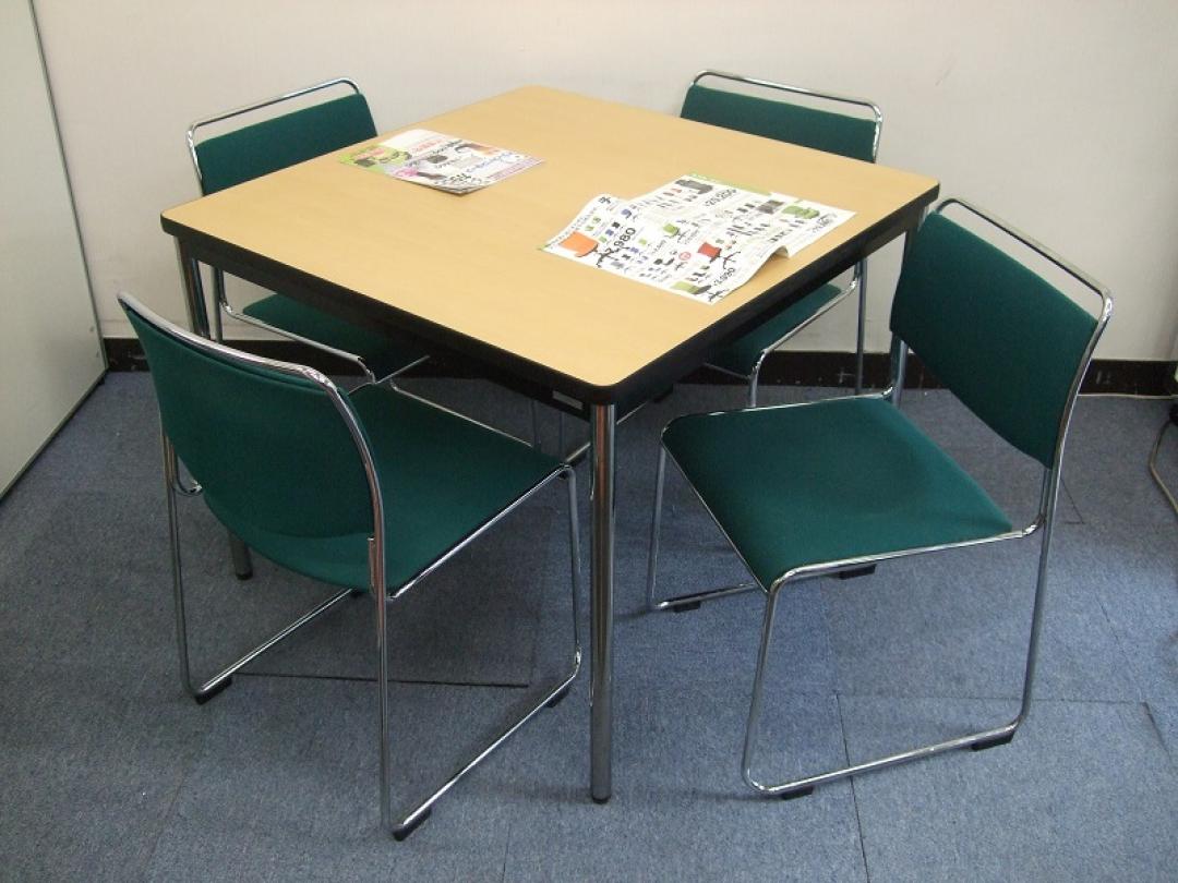 優しい色合いのナチュラルカラーのミーティングテーブルに、落ち着いたグリーンカラーのチェアをセットにしました!