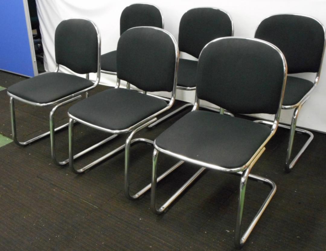 【セット商品】6脚セット ブラック ミーティングチェア キャンチ脚タイプ 【中古オフィス家具 会議用チェア】- 川崎店