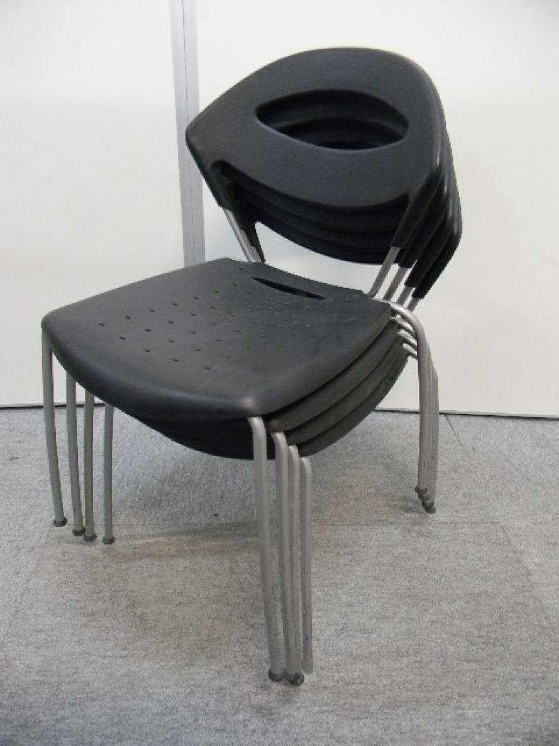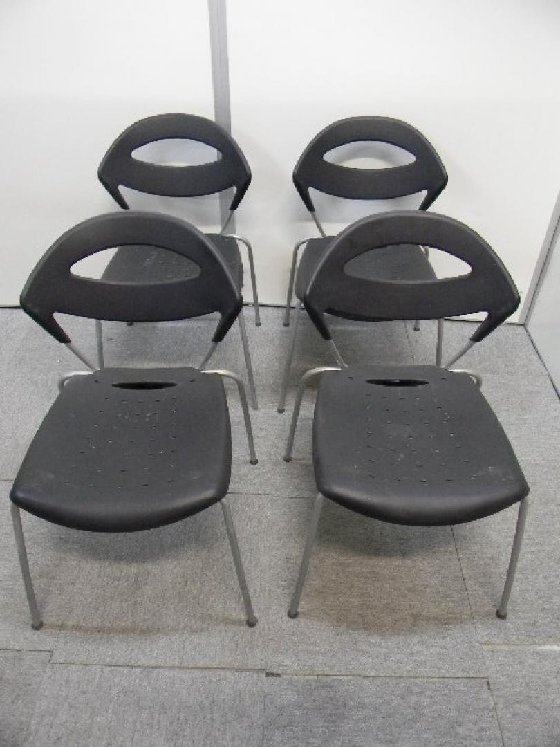スタッキングチェア 4脚セット ■ ブラック 4本足タイプ 〜シンプルな樹脂座面〜【セット商品】- 在庫数