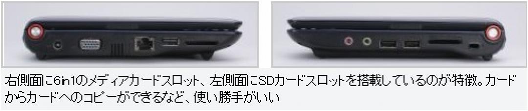 USB 2.0×3、SDメモリーカードスロット、6in1カードスロット(SD/MMC/RS-MMC/メモリースティック/メモリースティックPRO/xD-ピクチャー)、アナログRGB出力