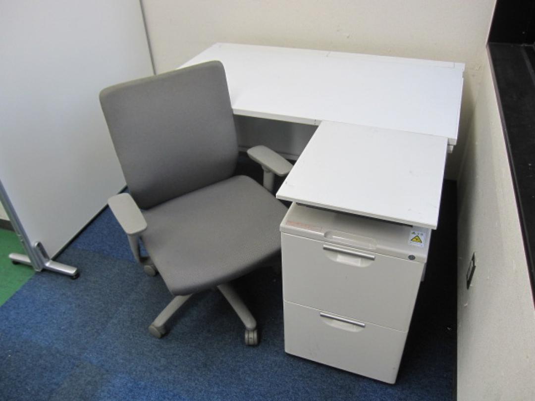 【3点セット!】【L字デスクにもなる!】平デスク 幅120cm × 肘付きOAチェア ライトグレー色 【セット商品】※中古 事務机- 品川・三田店