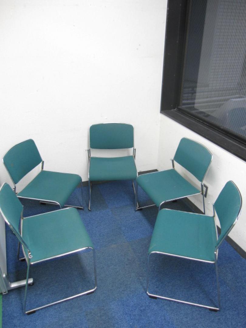 【4脚セット】頑丈な会議用チェア 布地グリーン色 【セット商品】※中古 イス- 品川・三田店