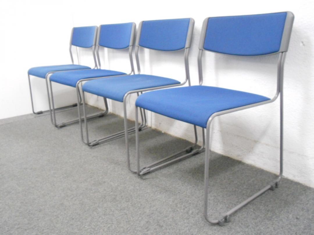 ■スタッキングチェア4脚セット ■ブルー- 在庫数