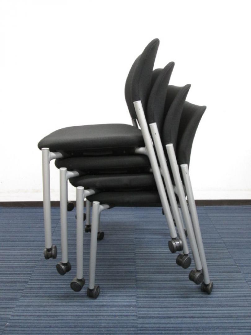 4,500円⇒3,500円!!!【30脚入荷!!】キャスター付き|オールブラック|安心のオカムラ製【会議椅子】【ロット】- 日本橋店