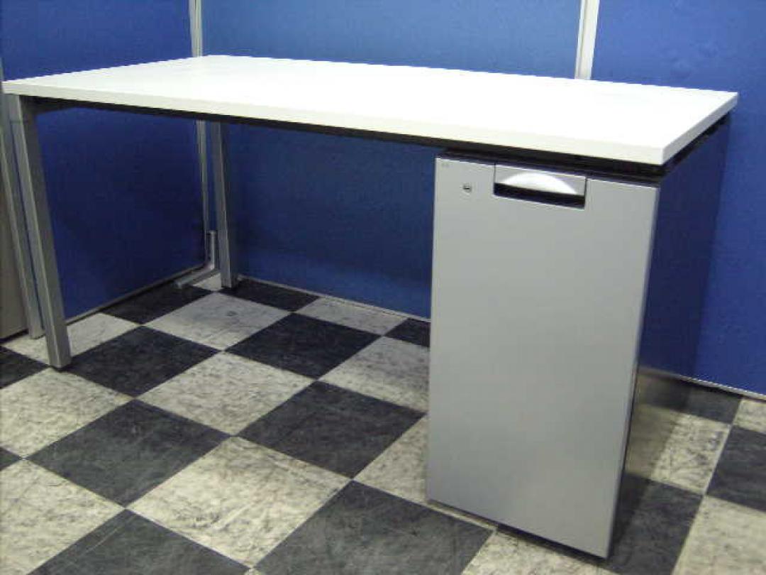 シルバー×ホワイトの取りあわせがスタイリッシュなコクヨ製デルフィシリーズの片袖机です。