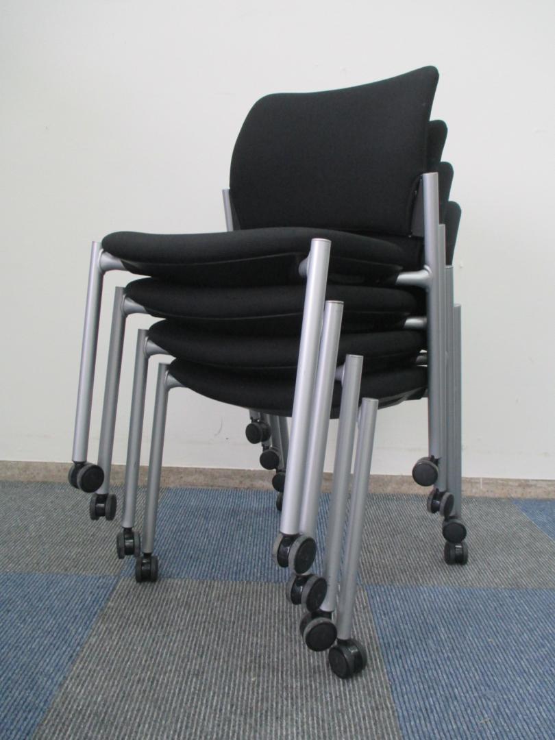 【状態良好品】【20脚のロット商品】オカムラ製 8147シリーズ スタックチェア【布地&キャスター付き】【中古 会議用チェア】- 千葉店