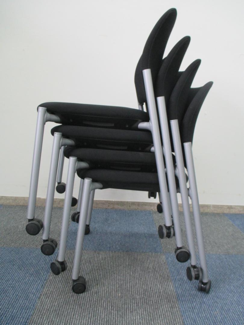 【状態良好品】【4脚セット商品】オカムラ製 8147シリーズ スタックチェア【布地&キャスター付き】【中古 会議用チェア】- 千葉店
